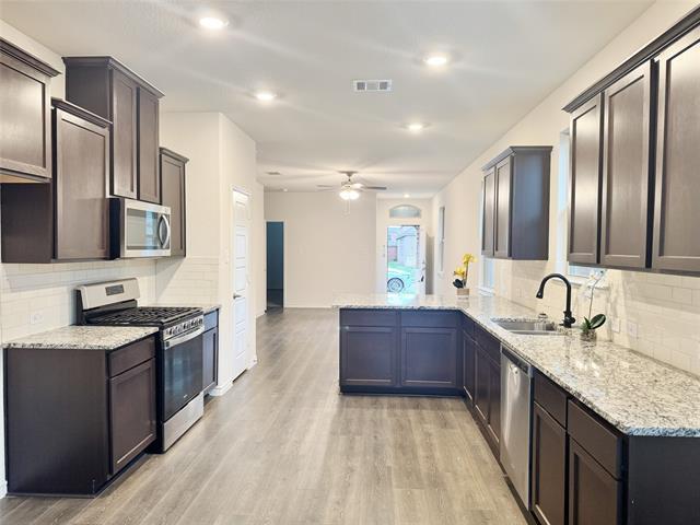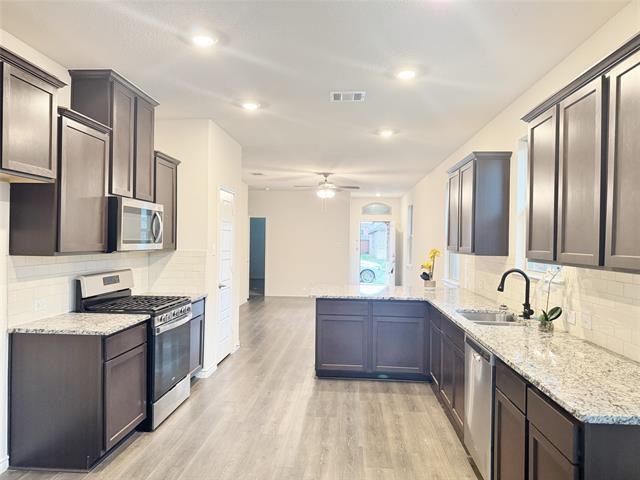 Moving Ready Beautiful One story Home in this wonderful neighborhood with Private Pool and Park Amenities. Excellent location. You can reach out dallas pkwy in 1 min. Open concept living and kitchen create a spacious feel with tons of upgrades including GRANITE and luxury vinyl. Beautiful kitchen offers cabinets, SS appliances, gas cooktop, plenty of storage, and nice sized pantry. The owners' suite has dual sinks, separate shower, garden tub, and walk in closet.