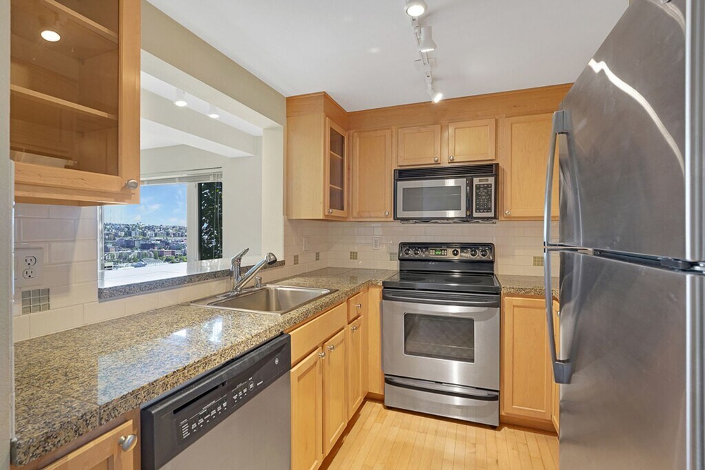 Available 12/1 or sooner! This wonderful 2 bed/1.5 bath top floor, corner unit boasts spectacular downtown Seattle and Lake Union views right from your living room - just in time for 4th of July! Great features include light and bright SW corner location, breakfast bar, granite and stainless kitchen, powder room and spacious entry with hardwood floors. Larger bedroom has ample closet space. Washer/dryer in unit. One secure parking space in the garage just off the lobby is included in the rent (tandem space for two small cars, or one large car). Additional storage closet on the 2nd floor, and water/sewer/garbage are included in the rent. Small dog (under 25 lbs) or cat ok with an additional pet deposit. No smokers, sorry. Fantastic Queen Anne location with great proximity to South Lake Union, downtown, Amazon campus, Dexter corridor, Hwy 99 and bus lines. Enjoy the fun retail and restaurant scene on Queen Anne or nearby Fremont. For more information on this lovely home, please contact Jacquelyn Scofield, Avenue One Residential, Seattle, WA at or . Please review our application screening criteria, copy/paste this link into your browser: #avenueoneresidential #queenannerentals #queenanne2bedroomforlease