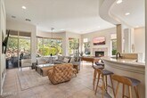 FULLY FURNISHED AND GUARD GATED. This Luxury home has been remodeled for a great vacation rental and is the perfect getaway. The home has a very open feel with lots of sunlight and large windows. The large family room has a fireplace,pool table and a large kitchen for entertainment. The Primary is on the North Side with other bedrooms by front door. The back patio has a sitting area with a TV and a beverage fridge. The rear yard offers a heated pool/spa with water feature,BBQ area with dining setting,suntan pad for three,and a putting green. Extra long driveway. The mailbox is NOT included. NON-SMOKING. NO PETS. Includes all services: WiFi,Cable TV,landscaping,pool,and all utilities. ($250 cap on utilities). Low Season (May-Oct) $5000. High Season (Nov-Apr) $8500.