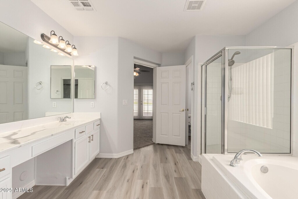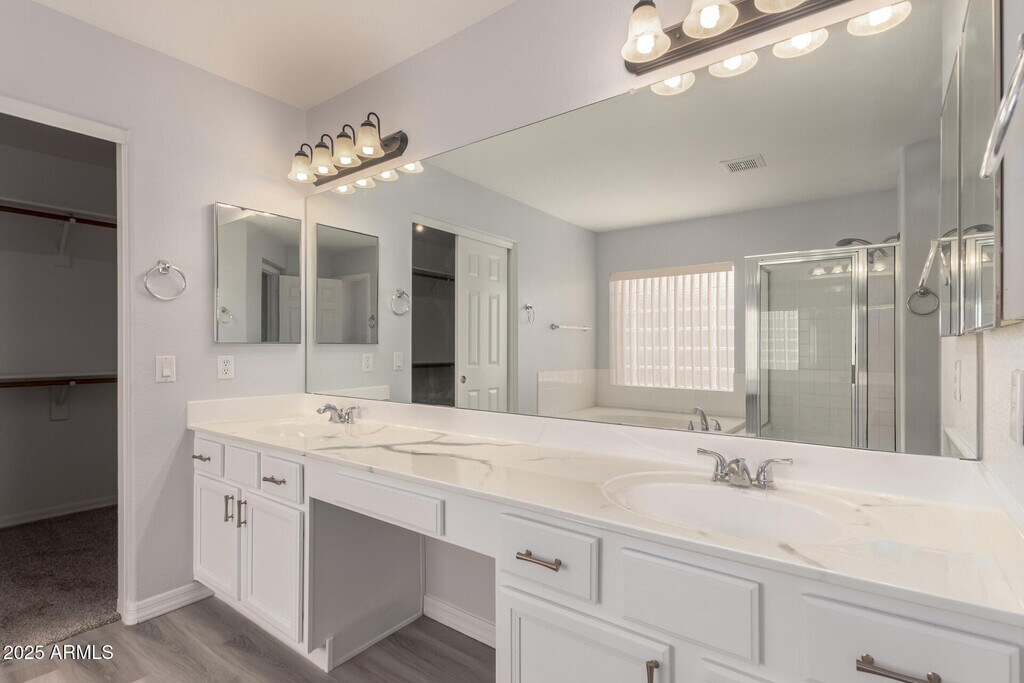 Lookout Vista,North Phoenix This 4 BR,2.5 BA home offers living and family rooms plus a loft. Recent upgrades include interior & exterior paint,new ceiling fans,updated kitchen and bathroom cabinets and countertops. The kitchen features newer refrigerator,cooktop,microwave,dishwasher,& faucets. Enjoy brand new LVP flooring in the main living areas & bathrooms,with high end carpet in all bedrooms,stairs,& closets. New blinds throughout,epoxy-coated garage floors,and a new patio roof complement the 2018 main roof update. Additional highlights include new A/C units (2024),updated smoke detectors,and low maintenance desert landscaping with a paved backyard. Convenient to schools,the 101 & 51 freeways Desert Ridge Marketplace,& endless options for hiking,biking & golf.