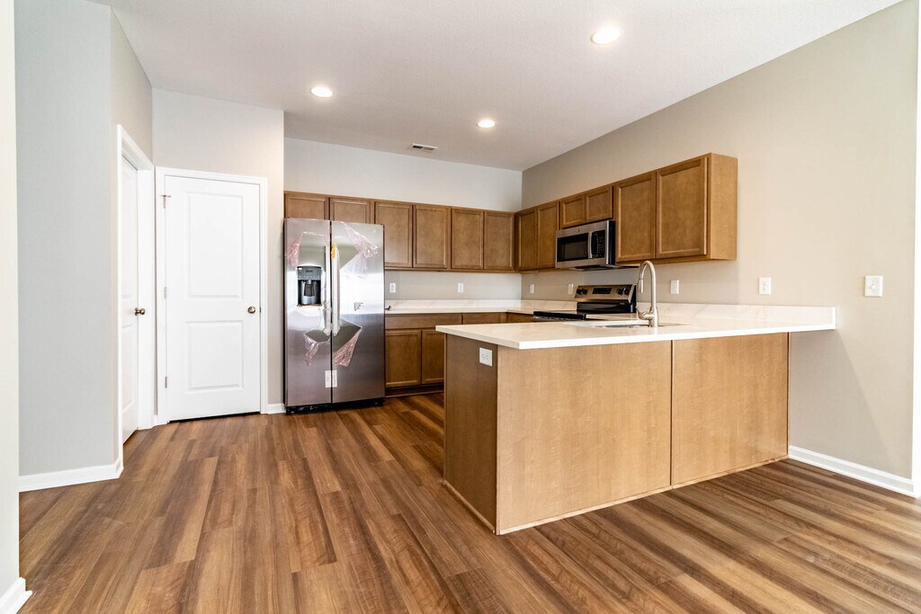 MOVE IN READY! Beautiful, brand new, all electric duplex that's move in ready! Featuring a spacious open-concept kitchen and living area, this home is perfect for entertaining or relaxing in style. Enjoy the sleek appeal of all stainless steel appliances to include washer and dryer. Each unit includes a private patio—ideal for morning coffee or evening gatherings—and a 2-car garage offering ample storage and secure parking. Plus, with yard care included, you can enjoy beautiful green space without the hassle. Pet friendly with a $350 deposit per pet as well as $25 pet fee per pet. Limit 2. No Smoking. **Renters Insurance is Required**
