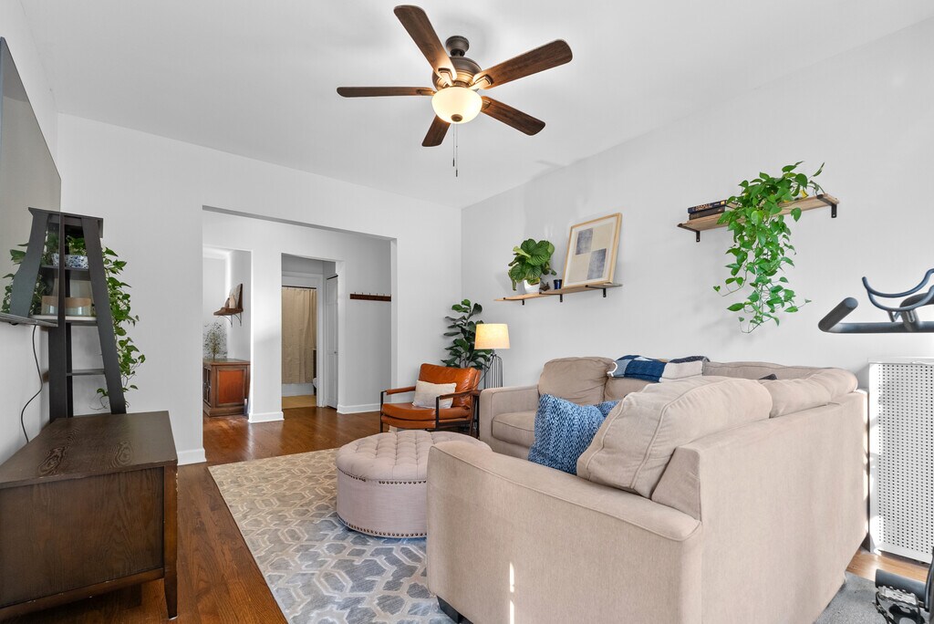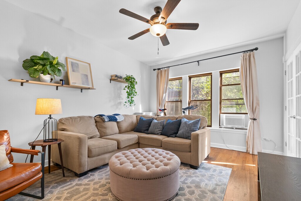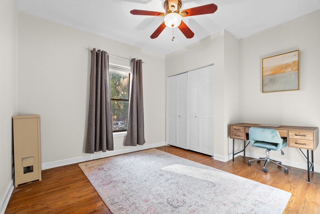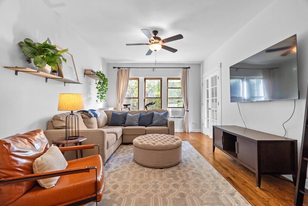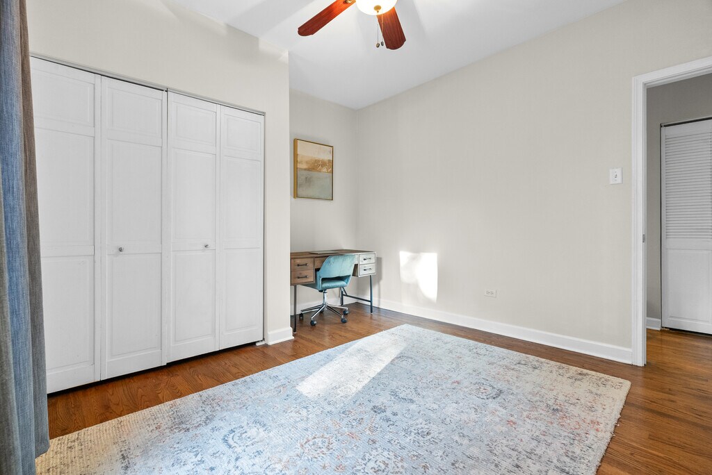 This bright and updated 2 bed, 1 bath plus office apartment in the heart of Graceland West combines vintage charm with modern convenience, perfect for professionals, couples, or young families. It offers two king-sized bedrooms, a bonus office/den, and a renovated kitchen and bath with brand-new stainless steel appliances. Additional highlights include in-unit laundry, hardwood floors, a private deck nook, and the option to lease partially furnished. Pets are welcome ($35/month per pet), and attentive on-site landlords ensure a smooth living experience. Nestled on a quiet, tree-lined street in the Ravenswood Elementary district, the home is just a short walk to Southport Corridor, Wrigley, the Brown Line, parks, and coffee shops.