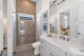 Annual Luxury Rental Available Now! The elements of chic sophistication and timeless style merge in this impeccably furnished and absolutely TURNKEY "Beacon" model grand estate heated pool home with four bedrooms plus den,four full baths and two half baths,and nearly 4,600 square feet of living space. A lasting impression is left before you even enter the threshold with such a stately presence and paver driveway of this full smart home. Situated on a gorgeous piece of lakefront,peace and tranquility can be found every day. Greetings from the foyer with soaring ceilings lead you to the great room straight ahead,the dining area to the left,and the kitchen off to the right. The chef in you will be pleased to find high end accoutrements from the stainless steel appliances,wine fridge,porcelain sink,center island,gorgeous quartz,a rarely available gas range cooktop,pot filler,oversized walk-in pantry,double oven,and name brand kitchen accessories. Entertaining is a breeze with elegant flow from the gourmet kitchen to the great room flanked by sliding doors to the enclosed lanai with your pool. A true outdoor retreat,the enclosed lanai has stunning lake views,portrait lanai screens,an outfitted outdoor kitchen,and multiple seating areas. The primary wing of the home includes large double walk-in California like closets,double vanity,soaking tub,separate shower with multiple heads,and is flooded throughout with natural light. Upstairs,your out of town guests will feel at home with an additional living room,wet bar,mini fridge,dishwasher,and microwave. The second story also features and ensuite and powder room. The three additional guest ensuites on the first floor are flanked by their own bathrooms as well. Peace of mind is enhanced with laundry in residence,wood and tile flooring throughout,3 car garage with electric charging capability,2 sets of sheets per bed,and completely turnkey. The Esplanade By The Islands is a special slice of Naples and Collier County with an easy 15 minute drive to downtown Naples & famed beaches,a 15 minute drive to Marco Island,and even closer to nearby shopping and dining options. Amenities at the Esplanade By The Islands include the full service restaurant,community pool,Bahama bar,exercise room,tennis,pickleball,basketball,bocce,sauna,and clubhouse.