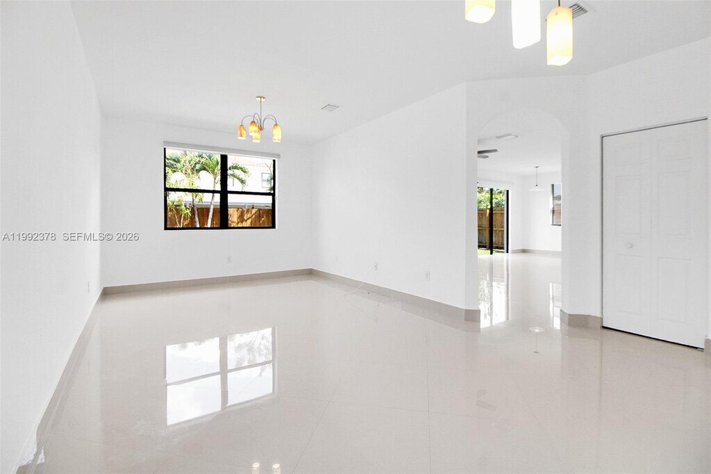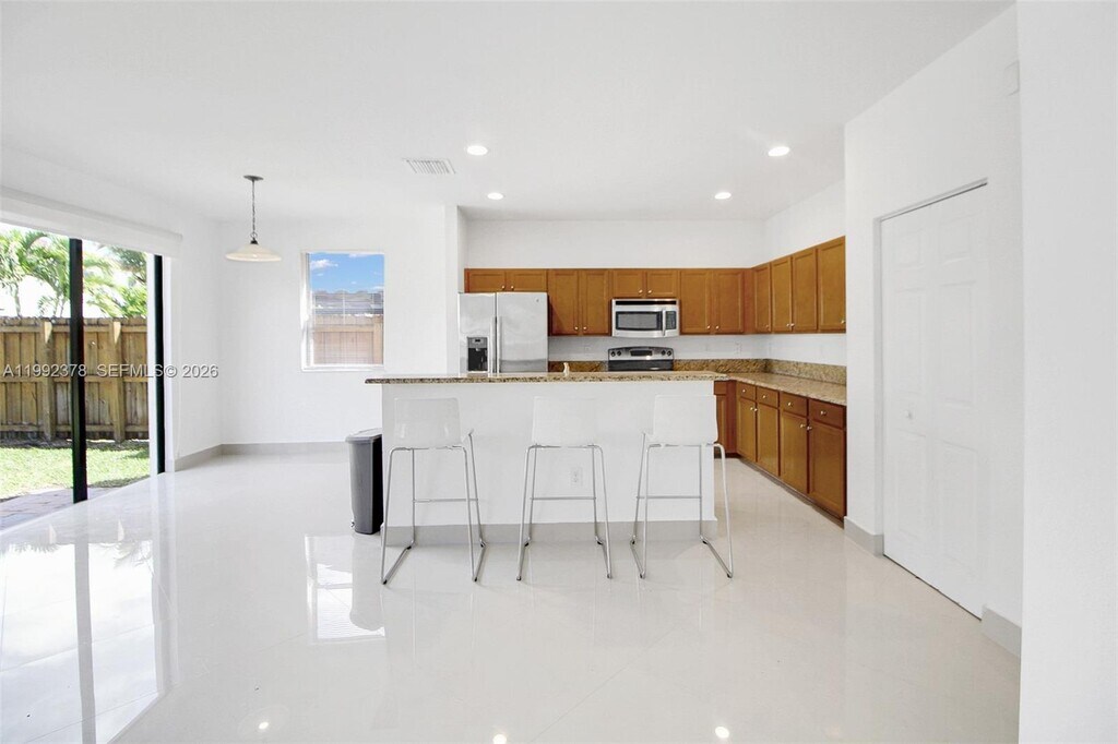 Spacious and well-maintained 5-bedroom, 3-bathroom single-family home offering a functional and versatile layout. The first floor features one bedroom and a full bathroom, ideal for guests or multi-generational living. The main living areas are finished with elegant porcelain tile flooring, while the second floor offers brand new carpet throughout for added comfort. The kitchen is equipped with stainless steel appliances and opens to the living and dining areas, creating a seamless flow for everyday living and entertaining. Upstairs, you’ll find generously sized bedrooms along with a conveniently located washer and dryer. Enjoy a large, private fenced backyard, perfect for outdoor gatherings, pets, or simply relaxing in your own space. Located in a desirable community featuring a resort-style infinity pool, clubhouse with family-friendly activities, fitness center, BBQ area, and playground. A great opportunity to own a move-in ready home with space, comfort, and excellent amenities. MLS # A11992378