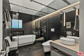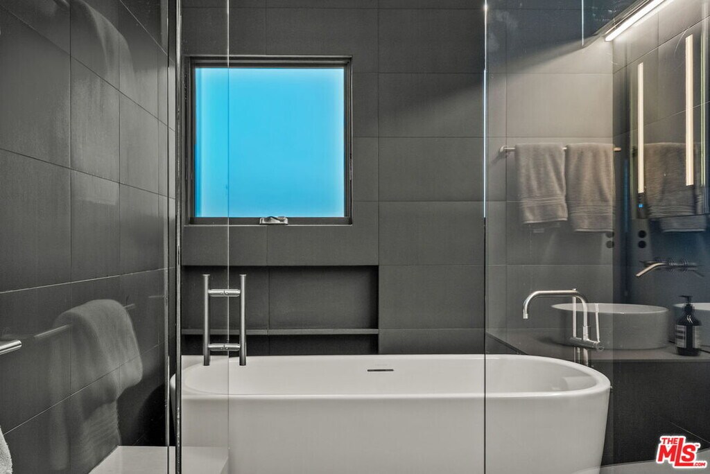 Venice Beach Custom Home - Available for lease for the first time: Exceptional location is just the start of this luxury smart home's charm. Just a half a block from Abbot Kinney Boulevard and approximately four blocks from world famous Venice Beach, this private 1-bedroom, 1-bath retreat brings the best of Venice living right at your doorstep. Walk to the beach, explore the iconic Venice Canals, or enjoy world-class shopping and dining just steps away on Abbot Kinney. Beyond the private gated entrance, a Japanese-inspired landscape and natural Ipe deck lead you to contemporary sliding doors that open wide to create a true indoor-outdoor living experience. This is a very special, very private home. Main Features: Thoughtfully designed interior/exterior: with approximately 1000 square feet, this smart home layout with high vaulted ceiling and open floor plan, blends modern elegance with effortless functionality. Custom cabinetry throughout includes a full-size pantry, numerous pull-out shelving closets and cabinets, utility/cleaning closet, and a dedicated laundry space with LG ThinQ washer and dryer. Large bedroom, closet & bathroom: The bedroom flows seamlessly into a custom walk-in closet, complete with a full-length mirror that opens to reveal hidden shoe shelving for over 20 pairs of shoes. The bathroom is a true centerpiece, featuring floor to ceiling tiles, a soaking tub for two, a walk-in shower complete with wall jets and a rain shower, wall hung full feature smart toilet, and a dramatic glass ceiling. Functional garages and exterior: This home features two separate garages with alley access offering rare versatility for Venice living. The first garage, finished in smoky grey with open entry, is pre-wired for EV charging. The second is fully enclosed, painted white, with a window and side door, making it ideal as an office, studio, or hobby space if not used for parking. Also includes additional pre-wired outlet for EV charging. A Venice Beach gem, offering elegant design, smart living, and effortless access to the very best of Venice. The property can be leased furnished or unfurnished. Furnishings are as pictured. MLS# 25628303