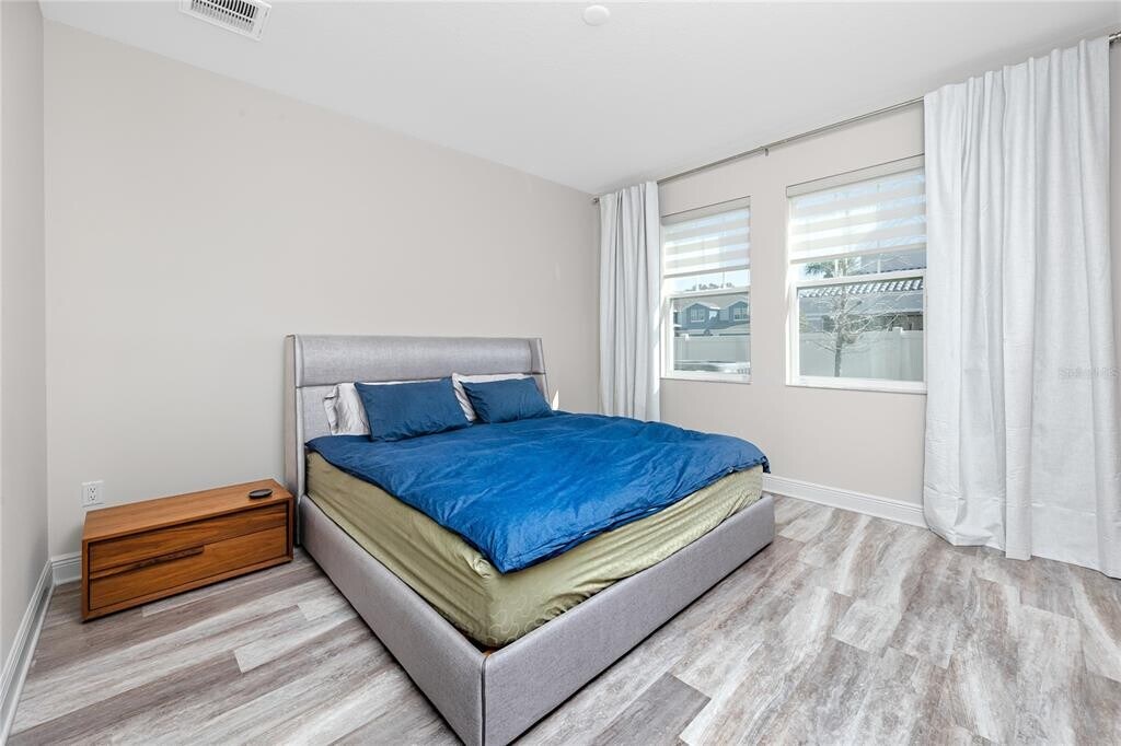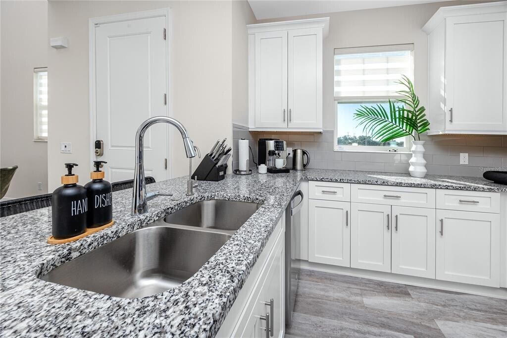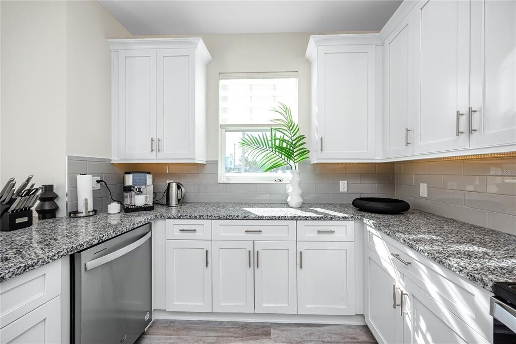 Experience elevated Florida living in the sought-after,gated community of Santorini Trace. This beautifully appointed corner-unit townhome was built in 2022,and offers a perfect balance of contemporary style,thoughtful design,and coastal charm. With over 2,000 square feet,this home features high ceilings and large windows that flood the interior with natural light. The open-concept floor plan is designed for comfort and entertaining,seamlessly connecting the kitchen,living,and dining areas. The stylish kitchen is equipped with Bianco Sardo granite countertops,gray subway tile backsplash,under cabinet lighting,and Whirlpool upgraded stainless steel appliances. Located on the first floor master bedroom serves as tranquil escape,featuring ensuite bath with dual vanities,shower,and a spacious walk-in closet. Upstairs,two good sized bedrooms with walk-in closets share a tastefully finished full bath. The generous loft offers versatile space for an entertainment area,home office,workout area,or additional lounge. Stairs and second-floor feature elegant Shadow Oak luxury Vinyl flooring,combining durability with modern style. Garage features sleek epoxy-coated flooring,and the laundry room is equipped with LG washer and dryer for added convenience. The property is located in a non-flood zone. It is conveniently situated near top rated schools,premier shopping,acclaimed dining,and Clearwater World Famous Beaches. This move-in-ready residence delivers exceptional value in a prime location. MLS# TB8478957