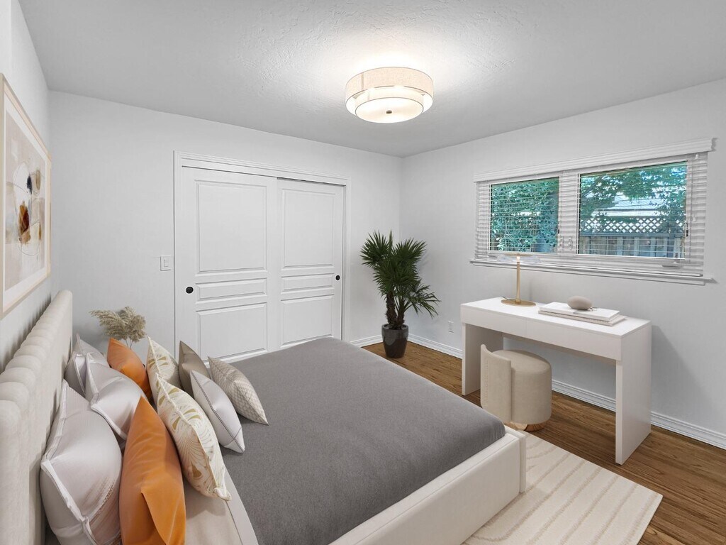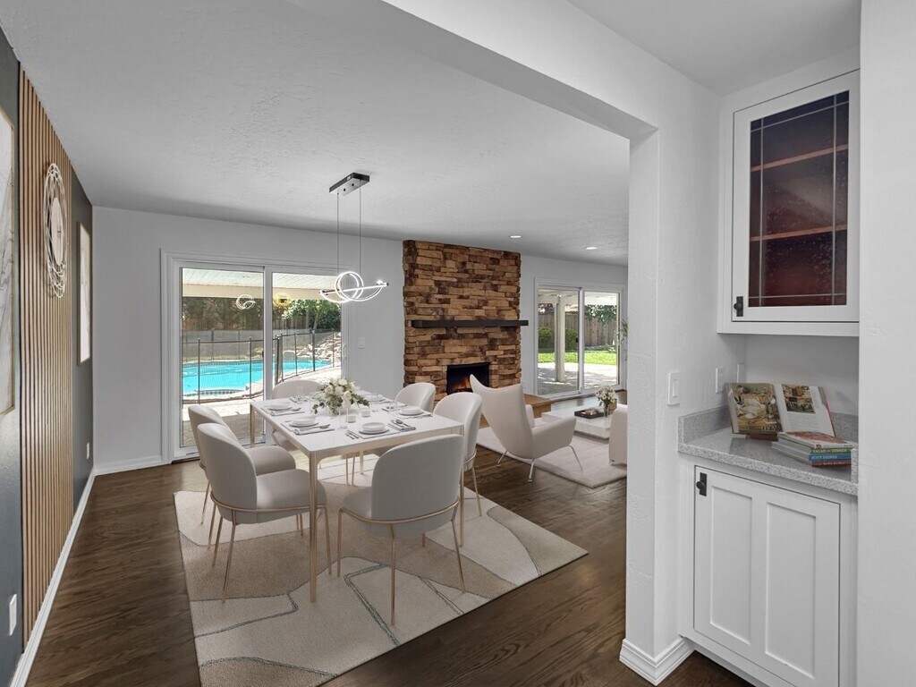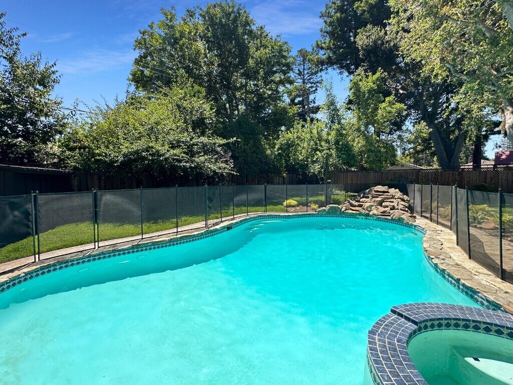 Welcome to this stunning 2064 sq ft home on a quiet cul-de-sac in South Los Altos. The gourmet kitchen boasts custom cabinetry, GE Profile appliances, a double oven, 5-burner gas range, refrigerator, microwave, dishwasher, range hood, large pantry, & bay windows to the front yard. The living & dining areas are perfect for comfort & style, featuring a family room w/a large-screen TV & fireplace, & a dining room w/views of the pool. Hardwood floors run throughout the home. This property includes 4 bedrooms, w/a luxurious primary suite featuring built-in cabinetry, a large closet, & an ensuite bathroom w/dual sinks, large shower, & a Toto Washlet toilet. The hall bathroom has dual sinks, custom cabinets, & a shower over tub. Additionally, there's a converted additional structure that is ideal for a home office w/AC. The expansive rear yard features beautiful trees, a lush lawn, & an incredible pool and hot tub, w/gardener & pool service included. The home also has a 2-car garage & a Tesla charging station. Zoned for Los Altos schools, this prime location is near amenities, parks, & transportation. Note: The home has been virtually staged. Minimum 720 FICO score & 3x monthly rent as gross income to qualify. Looking for 12 month lease, no pets (except service animals), & no smoking.