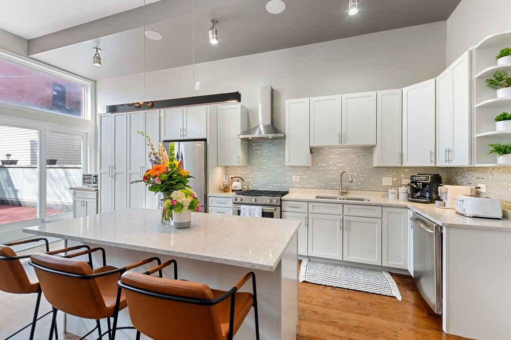 Short-term furnished rental you! for Unique opportunity in amazing West Town/ East Village. Located just two blocks to bustling Chicago Ave on seldom traveled one-way Pearson St. Walk to award winning restaurants,shopping,and just a 10 min walk to the CTA blue line. This stunning contemporary home is the perfect spot to entertain friends or find solitude in your daily life. Dream of a kitchen without countertop clutter? We have you covered. This beautiful kitchen features enough storage for all your cooking gadgets with two full heigh cabinet pantry's,and a large island. The appliances are like new and the direct vent hood will elevate your cooking game. Ample space for a dining table of up to 8 or step outside for alfresco dining on the large 400 square foot deck. Just a few steps up and looking down on the kitchen sits a the large living space with a wall of windows that floods the room with natural light. Three bedrooms are located on the top floor include the primary bedroom complete with a custom built-in,walk in closet,and bath featuring a steam shower- double vanity-and soaking tub. The lower level walk out basement features a 2 sided fireplace,family room and separate rec room which could convert into a 4th bedroom. Walk out the lower level to a private patio and yard,perfect for a dog run or a city garden. 2 car attached garage,plenty of storage,home audio,and security cameras complete this great home. MLS# MRD12518264 Based on information submitted to the MLS GRID as of [see last changed date above]. All data is obtained from various sources and may not have been verified by broker or MLS GRID. Supplied Open House Information is subject to change without notice. All information should be independently reviewed and verified for accuracy. Properties may or may not be listed by the office/agent presenting the information. Some IDX listings have been excluded from this website. Prices displayed on all Sold listings are the Last Known Listing Price and may not be the actual selling price.