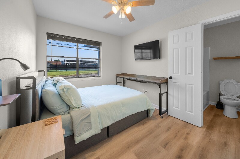 Property Id: 1781418 As you walk through the front door you will find yourself in our cozy living room! It's a great space to curl up on the couch and watch a show or read a great book after a long day! The spacious open concept layout of this house leads you into our dining room and fully decked out kitchen! Make yourself at home cooking in this spacious kitchen! Walk into your private bedroom you will find a queen size bed with a private hath