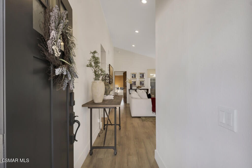 This beautifully updated single-story home offers the perfect blend of comfort, style, and convenience. Enter through a private front courtyard with a tranquil fountain that sets the tone for this serene and inviting residence.Inside, you'll be greeted by high-end luxury vinyl plank flooring throughout and a bright, open layout that feels both modern and welcoming. The newly remodeled kitchen is a chef's dream, complete with upgraded shaker cabinets, stainless steel appliances, a Wolf range, pot filler, genuine quartzite stone countertops and a farmhouse sink. The dining and living areas feature motorized window blinds, allowing you to easily control natural light and privacy.The primary bedroom suite includes a wall mounted TV and a remodeled bathroom with a walk-in shower. The secondary is quite spacious with a full bathroom conveniently located in the adjacent hallway.The two-car garage provides more than just parking, it includes a private laundry room with washer and dryer, epoxy flooring, an EV charger, water softener and attic storage with a pull-down ladder for easy access.Enjoy California living in the backyard oasis, featuring a covered patio, and spa, perfect for relaxing or entertaining.Additional highlights include a Nest thermostat, Ring security system, and housing provider will pay electricity, spa maintenance, and gardening services. This home offers high-end living in a peaceful, single-story setting, a rare opportunity you won't want to miss.