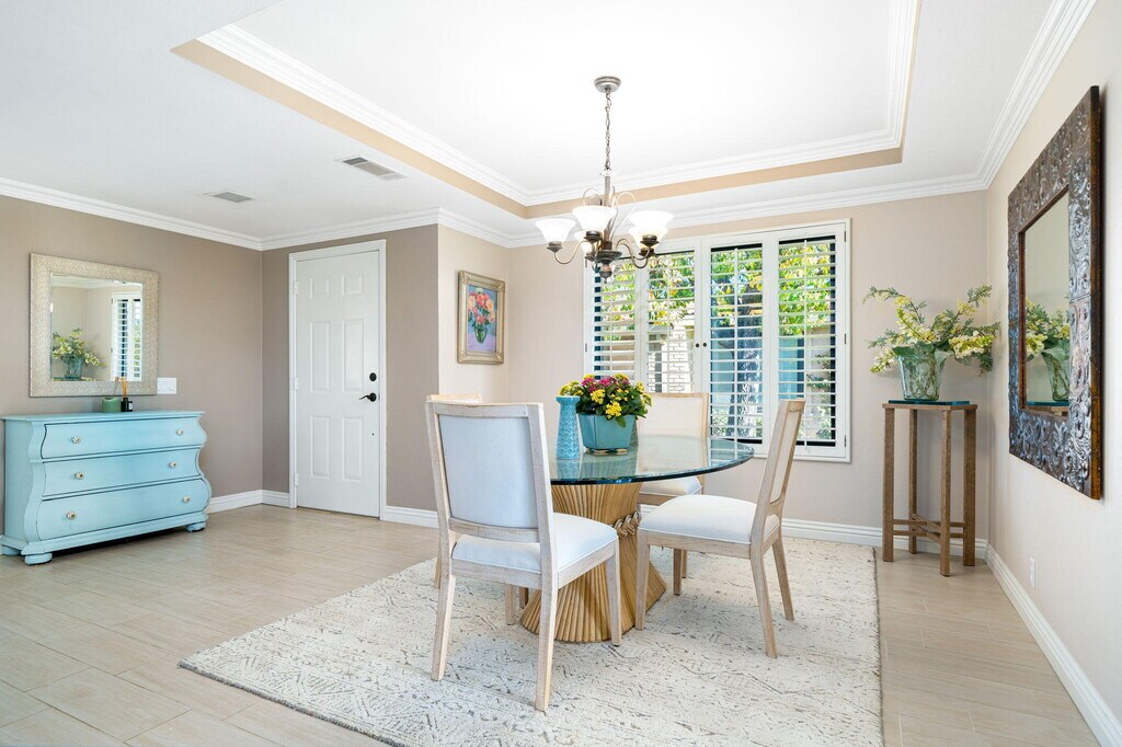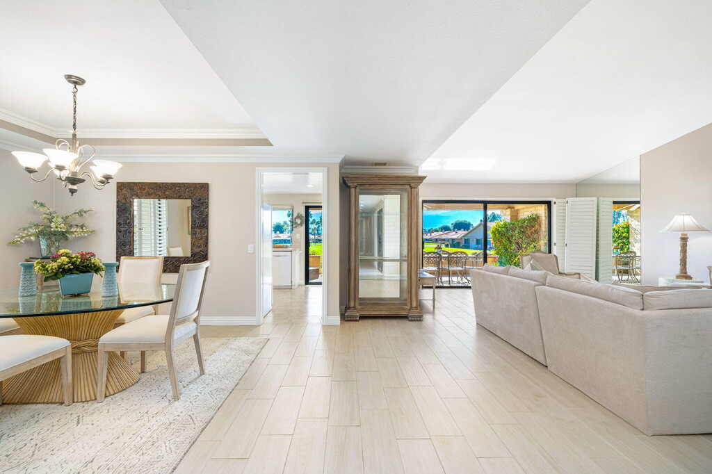 Leased Jan. - March 2026. Available April $7000,May & June $5000 per month. Spectacular South Mountain,Lake and Fairway Views from this charming 3 Bedroom - 3 Bath home located behind the gates of Chaparral Country Club. The bright,open floor plan is spacious with lots of natural light from the large windows,Atrium and Skylight. This lovely appointed home offers 3 bedrooms each with their own en-suite bath and TV's in each room. Upgrades include Tile flooring,shutters,baseboards,ceiling fans and crown molding. Living Room has a Flat Screen TV,full brick walled Fireplace and a slider that leads out to the patio and views looking out across the green Fairway. A bright white Chef's Kitchen has a Breakfast Nook and seating for 4. Separate Dining area for 6. The spacious Primary Suite has a King-size bed,TV and Walk-in closet and Bath with Separate Shower. Guest Bedrooms one has a Queen-size bed and one King-size bed. Separate Laundry room. Step out to the covered Patio with your private BBQ; enjoy your morning coffee or evening cocktails as you marvel at the expansive views of the Southern Mountains beyond. Chaparral Country Cub offers Pickleball,Tennis,Fitness Center plus main Clubhouse. Basic Cable TV,Internet included with Lease. Centrally located in Palm Desert and close to renowned El Paseo's upscale shopping/restaurants,McCallum Theater and more.