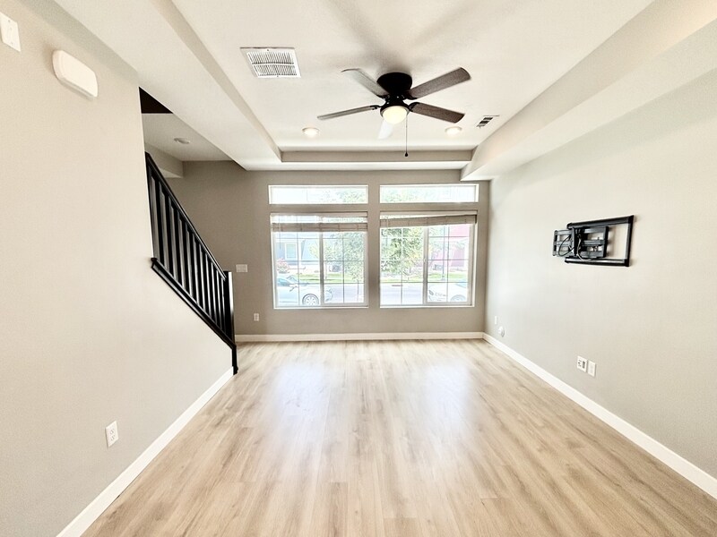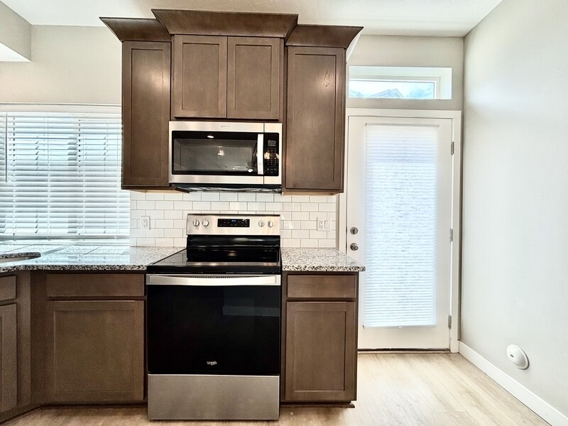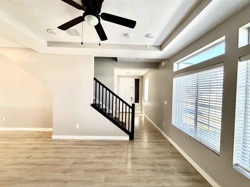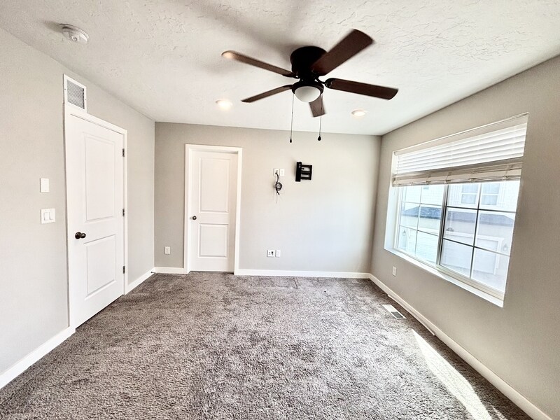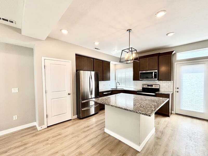 STUNNING 3BD/2BA Saratoga Springs HOME with stylish finishes, fully fenced yard, and a rooftop deck with beautiful views. Open main level features wood style flooring and a bright living area flowing into a gourmet kitchen with granite countertops, stainless steel appliances, and oversized island. Second floor offers 3 carpeted bedrooms and 2 bathrooms, including a full bath with dual vanity, a master suite with private bath and walk-in closet, and a second bedroom with its own walk-in closet. Linen closet with laundry hookups. Top floor leads to the rooftop deck. Conveniently located near parks, shopping, dining, and freeway access—everything you need is just minutes away. Call/text Crystal at to schedule a tour today! Same day approval available! FEATURES: Attached 2 car Garage Central air Laundry hookups Beautiful Rooftop Deck! Smart home Nest Thermostat Modern finishes and wood floors Plenty of natural lighting Tons of storage and walk-in closets in 2 bedrooms Laundry room hookups Close to Parks, Shopping, Dining and Freeway entrances! Fenced Backyard area Utilities: Tenant is responsible for gas, electric, water, sewage, trash. Don't miss out, call today! Contact Crystal for any questions on approval requirements! Easily apply at
