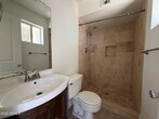 Beautifully Upgraded 3-Bedroom,2-Bath Home in a Desirable Neighborhood! This stunning home features numerous upgrades and modern finishes throughout. The interior boasts elegant two-tone paint,brand-new carpet,dark-stained cabinetry,and granite countertops. Enjoy tile flooring in all the right areas,brushed nickel hardware,and beautifully updated vanities in both bathrooms. The bathrooms also feature travertine tile in the shower/tub and primary shower for a luxurious touch. The exterior has been refreshed with modern paint,and backyard landscaping with pavers is currently being completed. With its many upgrades and attention to detail,this home is a must-see and priced to rent!