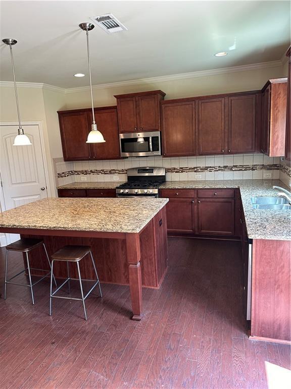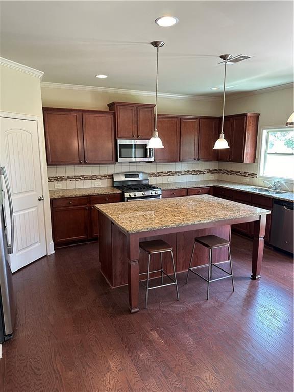 Gorgeous Brick and Stone Front Home Offers 5 Bedrooms PLUS Bonus Room and 3 Full Baths. Inviting Rocking Chair Front Porch. Two Story Foyer Offers a Warm Welcome Into This Open Concept Floor Plan with Neutral Paint Throughout,Hardwoods in Foyer,Dining Room,Kitchen and Hallway on the Main. Beautiful Coffered Ceiling in the Dining Room - Perfect for Entertaining or Gathering with Family. Kitchen is a Chef's Dream with Large Island,Breakfast Bar,Gas Oven,Range,Tile Backsplash,Granite Counters,and Walk-in Pantry - Refrigerator in Kitchen Stays. Bedroom and Full Bath on Main - Perfect as a Guest Suite. Owner's Bedroom and Bath are Truly Oversized and Feature Dual Vanity,Separate Tub/Shower,Tile Flooring and Walk-in Closet. Every Room and Closet is Spacious! Great Outdoor Living in the Large Backyard and Side Yard. Level Lot,Yard and Driveway.. Providence Walk Offers Amenities Including Swim and Playground Within Walking Distance. Great Location with Easy Access to Hwy 575,Hwy 20,Publix,Kroger and More!