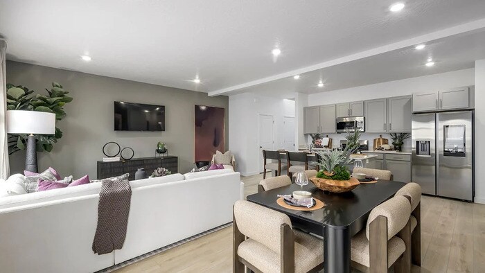 Brand-new 3 Bedroom two-story townhome for rent featuring an open-concept first floor with connected family room, dining area, and kitchen. Three bedrooms are located upstairs, including a spacious primary suite. An unfinished basement provides additional storage space. This property allows self guided viewing without an appointment. Contact for details.