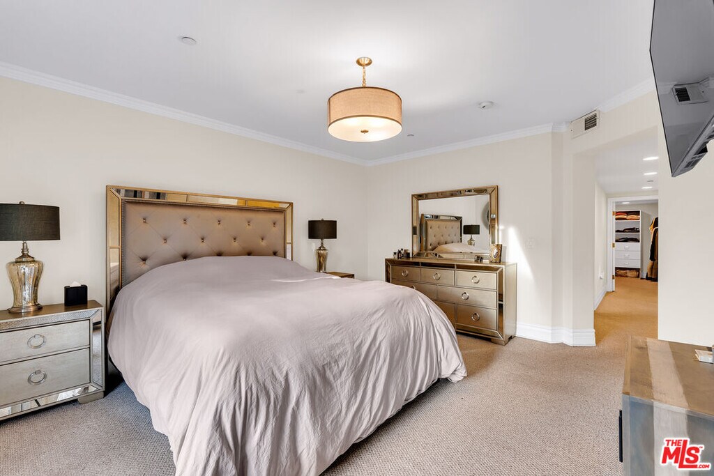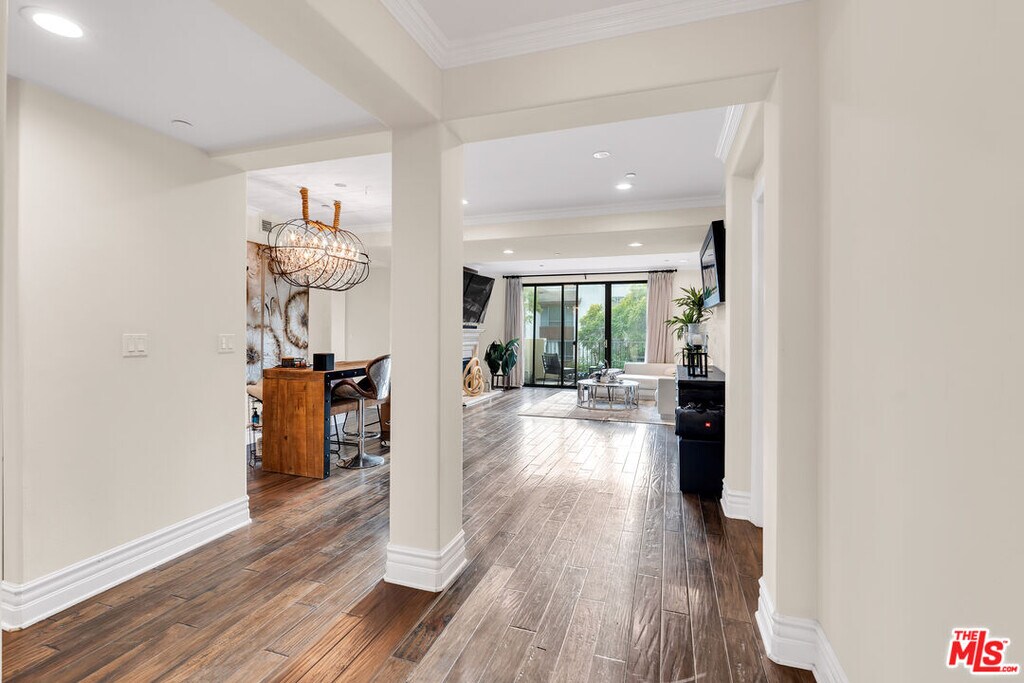 Welcome home to this premium luxury condominium building conveniently located in a prime pocket of Westwood. Enter into this upscale building through a fountain courtyard entrance filled with lush greenery and exquisite Mediterranean surfaces. As you enter into this west-facing, front and center dynamic unit you are immediately impressed by high ceilings, crown moldings, hardwood floors and a stunning row of reductive Roman-inspired colonnade that spatially separate the series of well-proportioned living areas. The chef kitchen flanked by the formal dining room on one side and the bar area" and living room on the other, is a dream-come-true fully equipped with stainless steel Viking appliances, travertine backsplash, granite countertops and oak cabinetry. Depending on the mood, effortlessly serve your guests in the formal dining room or in the bar area and living room leading to the spacious balcony where BBQ is being prepared. The living room with the stone fireplace flows easily into the spacious balcony through the double sliding doors creating an indoor-outdoor atmosphere for those dreamy LA nights. The split bedroom floor plan allows for maximum privacy between the two ensuite bedrooms. The completely enclosed and expansive luxury master suite boasts a double-sink vanity, a soaking tub, a luxury shower and an oversized walk-in closet. Start your day by enjoying your morning coffee on the balcony that overlooks the Jacaranda-lined treetops in this tranquil street. Luxury guest bathroom at entry, side-by-side washer/dryer, two tandem parking spots, 7 guest parking spots in undercover garage and so much more !" MLS# 25589143