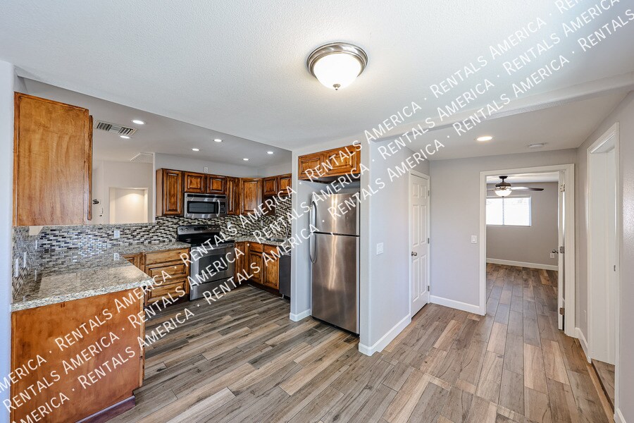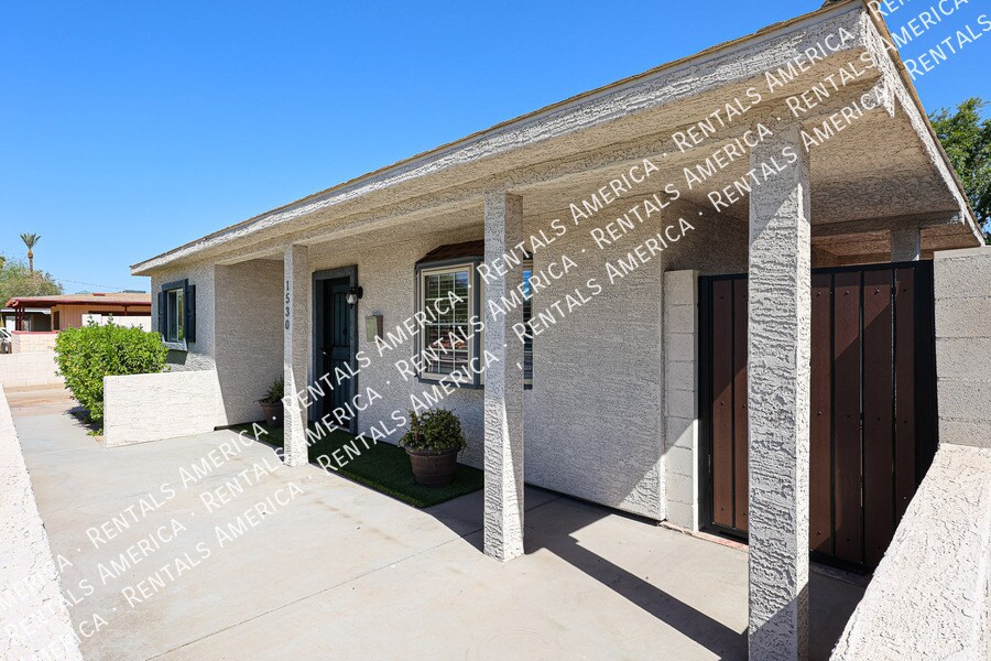 Experience refined living in this exquisitely remodeled single-family home, offering 1,425 square feet of sophisticated design and modern luxury. Featuring three spacious bedrooms and two beautifully appointed bathrooms, this residence has been upgraded from top to bottom with impeccable attention to detail. The open-concept layout creates a seamless flow between living spaces, ideal for both grand entertaining and everyday comfort. A private backyard oasis awaits, complete with a gorgeous covered patio perfect for relaxing or hosting gatherings. An oversized exterior storage unit provides ample room for additional belongings, ensuring functionality matches style. This home also boasts a brand-new air conditioning systeman essential feature for year-round comfort in Phoenixs warm climate. Perfectly positioned near major freeways, premier dining, and vibrant entertainment, this home places you minutes from everything while offering a peaceful retreat from the bustle of the city. One Time Admin Fee: $300, Pet Deposit: $300/pet (if applicable), Service Fee: 2%. $39/month Resident Benefits Package, Helping Heroes Discount Available! Carpet Cats Allowed Ceramic Tile Disposal Dogs Allowed Dryer Pets Allowed Washer
