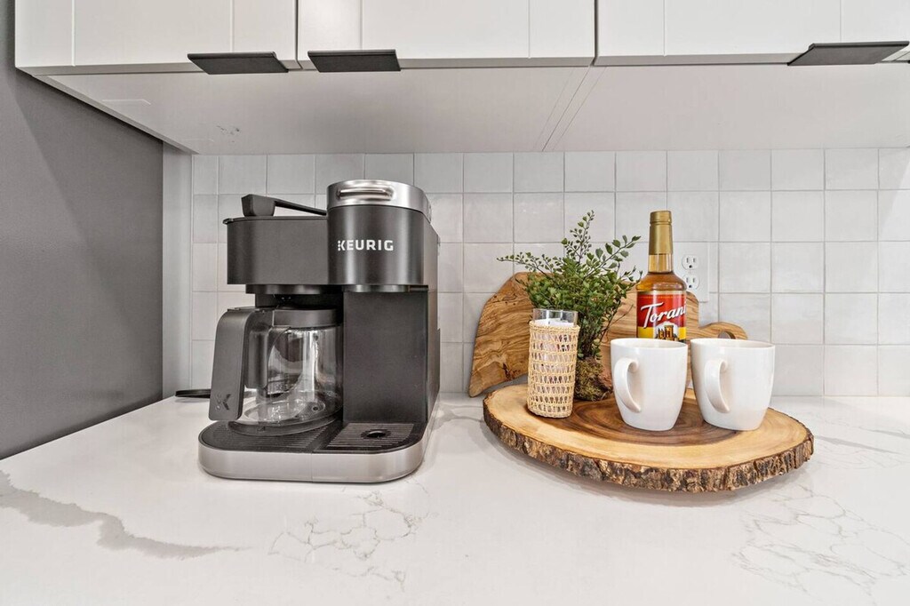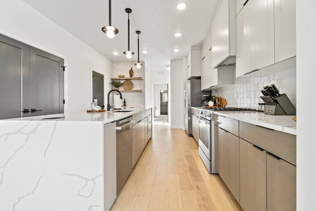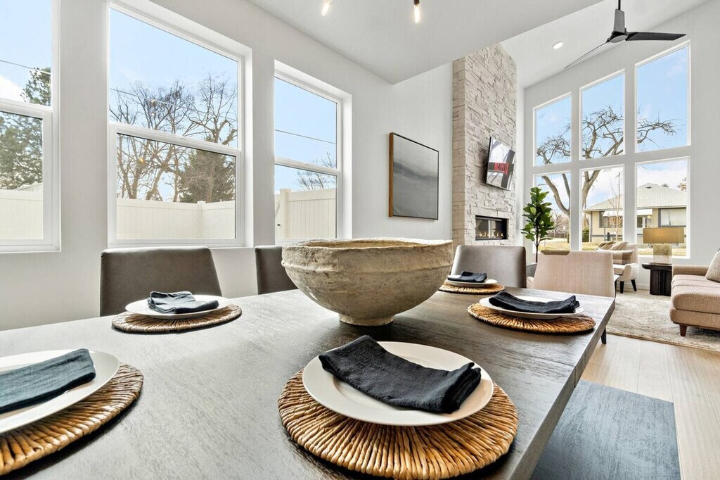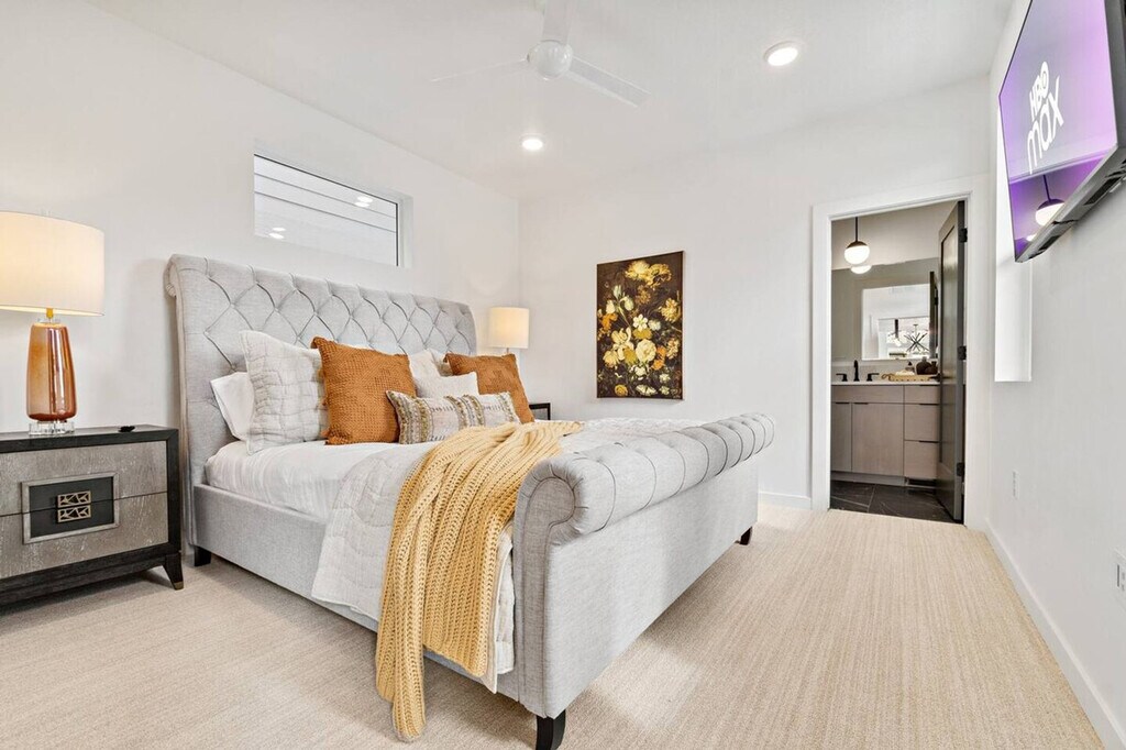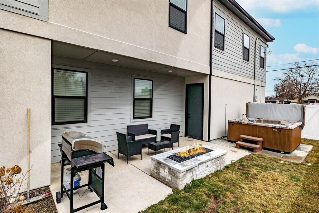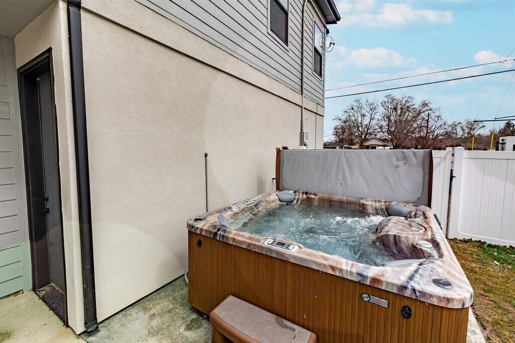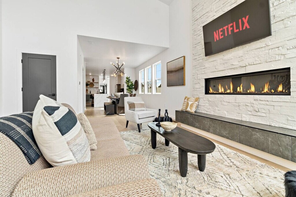 Stay in this modern, brand new home in Boise, featuring a large 2,600 square foot layout in a fantastic location. Feel at home with a brand new hot tub in the backyard that comfortably seats seven. This home is just a 5-minute walk to BSU and close to the downtown restaurant scene. Each bedroom offers a private bathroom and walk-in closet, ensuring comfort and convenience for all guests. The home boasts a professionally decorated space with unique furnishings and a warm ambiance. The fully stocked and equipped kitchen includes stainless steel appliances such as a microwave, fridge, stove, and dishwasher, along with glasses, mugs, dishes, and cutlery. Enjoy complimentary WiFi, live TV, and coffee during your stay. The downstairs master bedroom features a king-size bed, while two upstairs suites have queen beds, another suite has two twin beds, and there's a sofa bed in the upstairs living room. Located just blocks from Bronco Stadium and the BSU campus, this home offers easy access to the local water park and is close to downtown's vibrant restaurant scene. The secure double car garage parking adds convenience for guests exploring the area. The home is professionally cleaned and sanitized between each guest stay. Enjoy easy self-check-in via a secure door keypad, ensuring a seamless arrival experience. The property includes a mid-sized fenced yard with a gas fire pit for relaxing evenings. With fast WiFi, this home is ideal for working remotely, providing a comfortable environment for productivity. [SI]