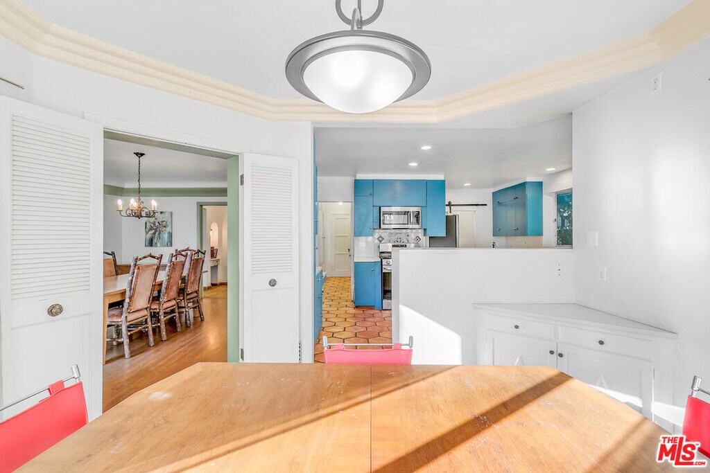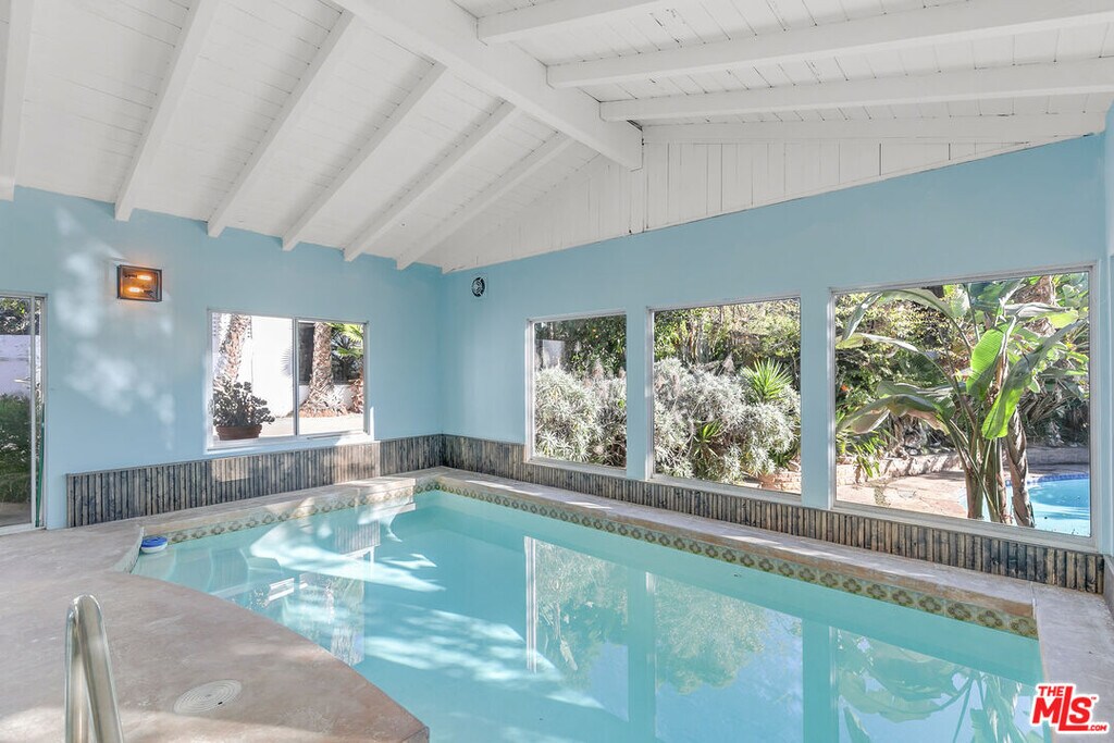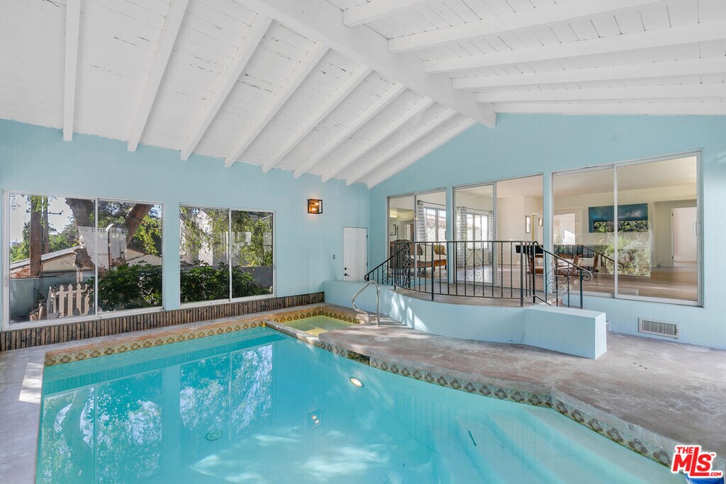 Perched high in the Glendale Hills, this 1934 Spanish-style treasure offers 4,705 sq ft of timeless charm on a sprawling 14,400 sq ft lot. The home features a grand living room with soaring ceilings, arched windows, and a stately fireplace. The whimsical kitchen boasts cobalt blue cabinetry, vintage details, and a sunny breakfast nook. The backyard is an entertainer's paradise with a sparkling outdoor pool, lush greenery, built-in grill, pizza oven, and a mature avocado tree. Inside, enjoy the luxury of an indoor pool and hot tub for year-round indulgence. The upstairs primary suite includes a private living room and balcony with serene views. A recreation room with pool table, detached studio, two-car garage, and driveway parking complete this unique hillside retreat. Memories are waiting to be made at 1530 Valley View. MLS# 26659211