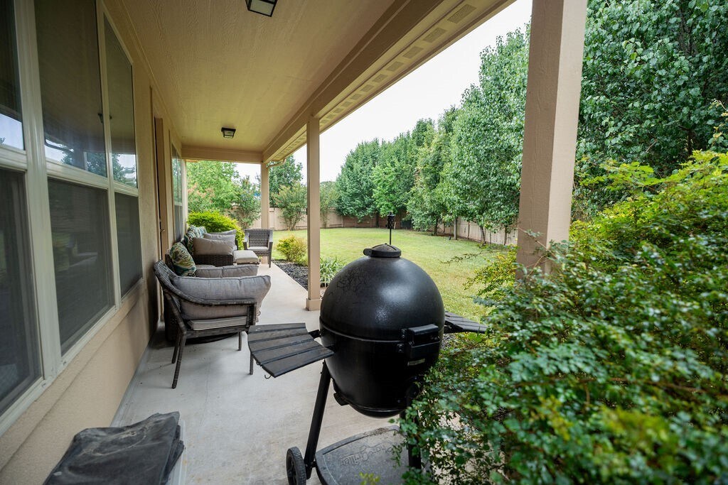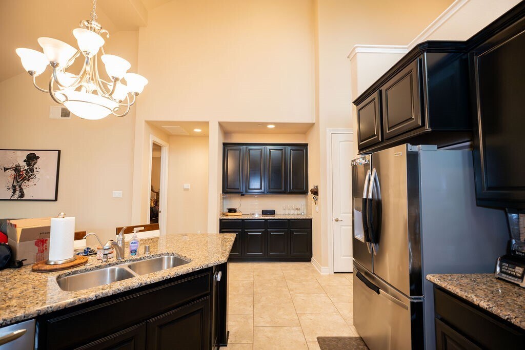 Wonderful 3-Bedroom,3-Bath Home Located in the gated enclave of The Fountains at Jacobs Reserve,this beautifully maintained home offers a functional and stylish layout with soaring ceilings and abundant natural light. The main level features two bedrooms,including a spacious primary suite with a luxurious bath,a guest bedroom with its own full bath,a dedicated office,formal dining room,and an open-concept kitchen and living area. The kitchen is upgraded with rich black distressed cabinetry,granite countertops,and wood flooring throughout the main spaces. Upstairs,enjoy a large private living area,an additional bedroom,and a full bath,with a privacy door at the base of the stairs—perfect for guests or multigenerational living. The backyard is generously sized with plenty of space for a future pool,enhanced by mature trees,privacy landscaping,and a covered patio ideal for outdoor relaxation. Lawn maintenance is included with HOA dues for worry-free living MLS# 38832286