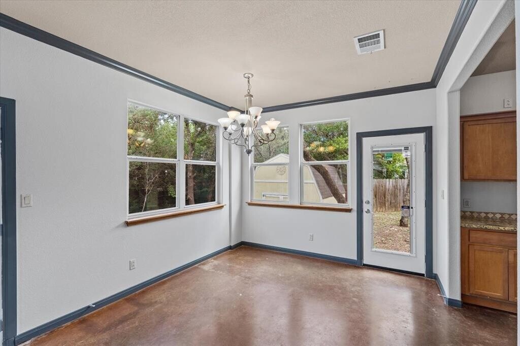 Private home on a wooded lot bordering a small stream in a secluded eclectic Lake Travis neighborhood. Keep Austin Weird. Peacocks roaming the neighborhood. Room to park a boat. Award winning Lake Travis ISD! Lots of light with wood and stained concrete floors. Large deck areas for entertaining. Tuff shed storage. Multi story doll house has granite counter tops, stainless appliances and comes with washer and dryer. Adjacent to shopping and lots of restaurants. MLS ID 5640184