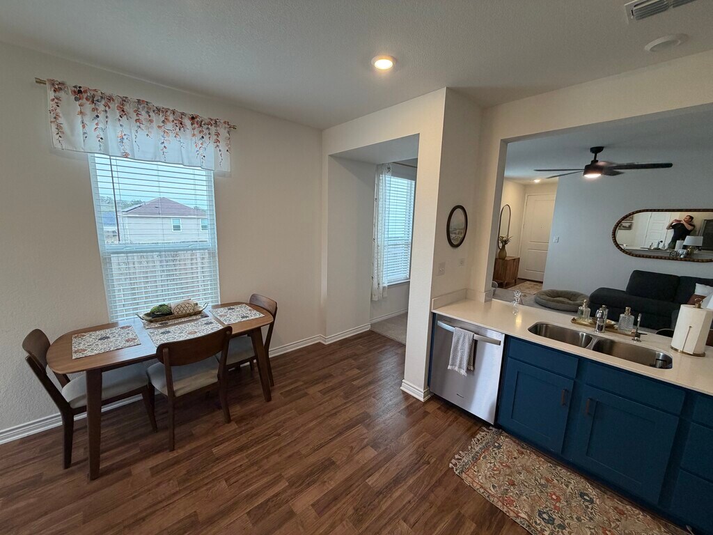 PRIVATELY RENTED Welcome to 15307 Oceanus Dr, a new construction single-family home built in 2024, located in a quiet cul-de-sac in San Antonio. This 3-bedroom, 2-bathroom home offers 1,377 square feet of open-concept living space with modern finishes throughout. The home features laminate and carpet flooring, a fully remodeled custom kitchen with stainless steel appliances, including a dishwasher, range/oven, refrigerator, reverse osmosis, and garbage disposal, and ample cabinet and counter space. Includes an installed water softener. The spacious living room includes a built-in entertainment center, perfect for everyday living and entertaining. Additional highlights include central air conditioning and heating, in-unit washer and dryer, and a two-car garage with a large driveway. The fully fenced backyard provides plenty of space for outdoor entertaining, pets, or play. Residents enjoy access to community amenities such as a swimming pool and nearby parks. Conveniently located near shopping, dining, schools, and major highways, this move-in-ready home offers comfort, functionality, and modern design in a desirable San Antonio neighborhood. Pets are considered on a case to case basis.