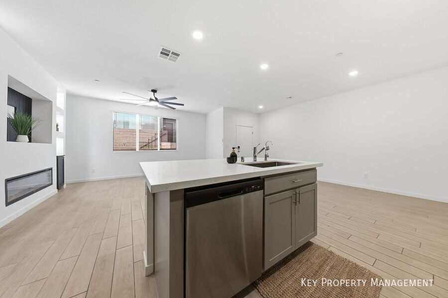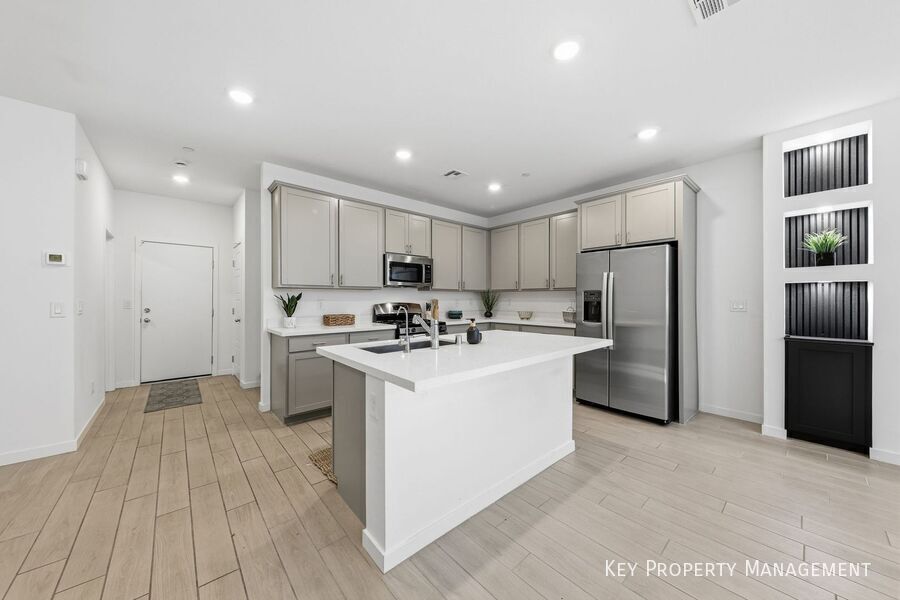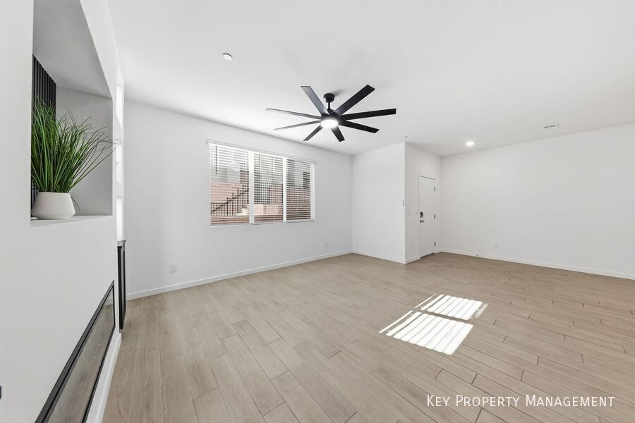 Step into this stunning two-story Lennar townhome featuring a bright, open-concept first floor that seamlessly blends living, dining, & kitchen spaces—perfect for everyday living & entertaining. The gourmet kitchen boasts upgraded cabinetry, sleek Iced White quartz countertops, & stainless-steel appliances, complemented by ceramic tile flooring. Upstairs, retreat to the luxurious owner’s suite with a spa-like bathroom, walk-in closet, & private covered deck. Two additional bedrooms include spacious layouts, Upstairs Elegant upgraded carpet, blinds throughout, & included washer/dryer add to the convenience. Ceiling fans are installed in every room. Located in a secure gated community, residents enjoy exclusive access to a sparkling pool, park, picnic area, & playground. The home is ideally situated near abundant guest parking for added convenience. Community Park Community Playground Community Pool Gated Community