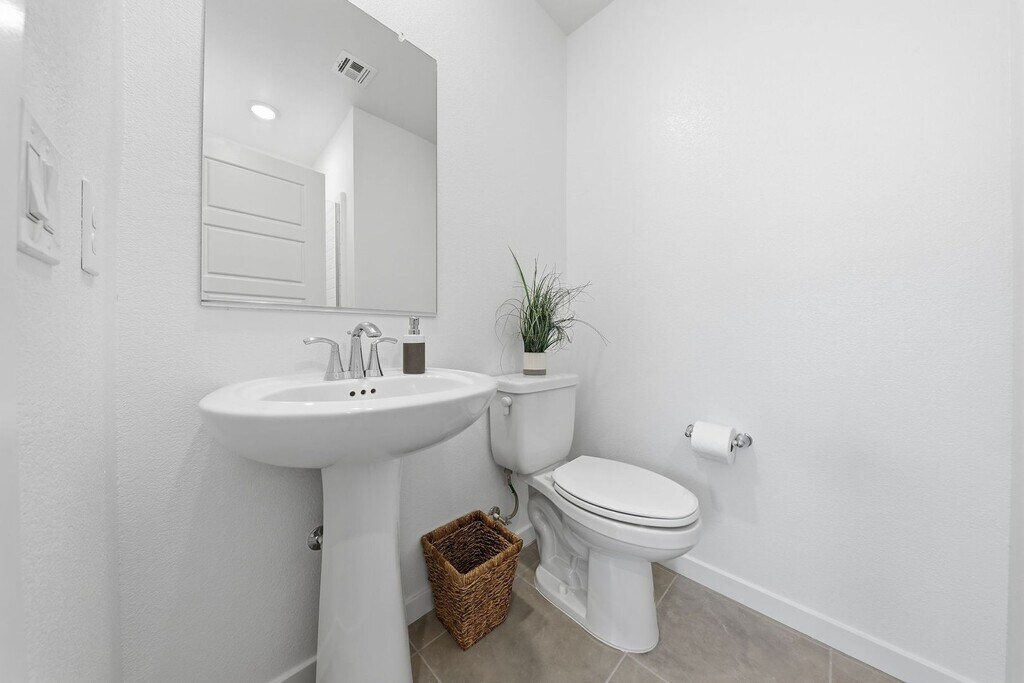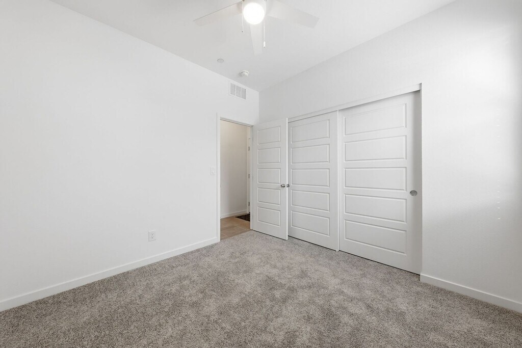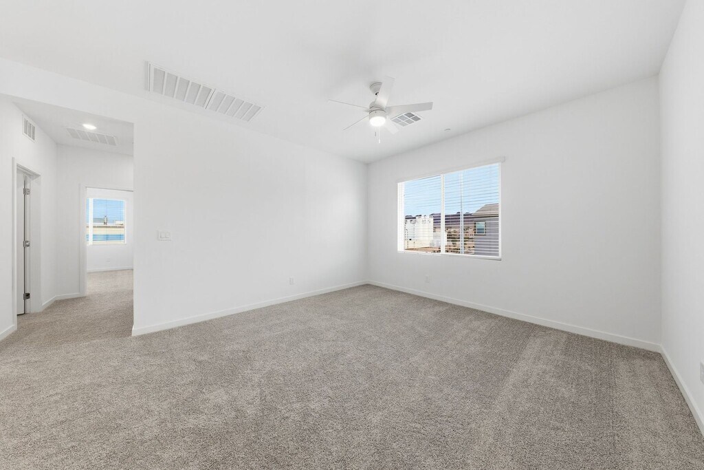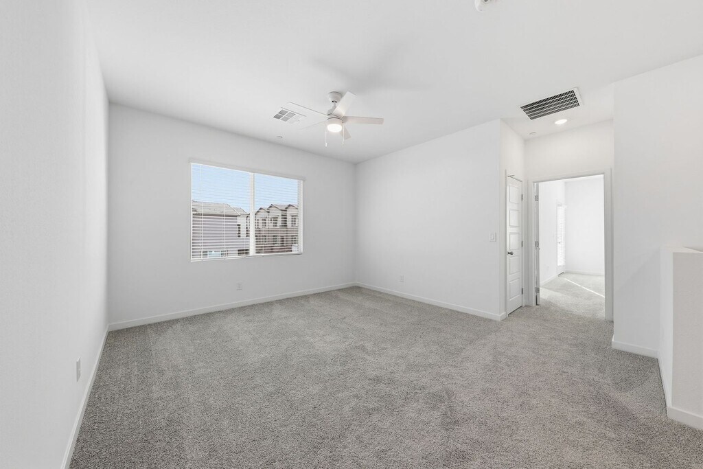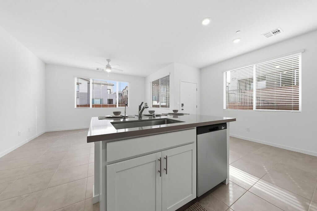 Brand new, never-lived-in Lennar corner end-unit townhome offering exceptional natural light throughout. This spacious 4-bedroom, 3-bath home features a bright open-concept first floor with upgraded tile flooring in all downstairs and wet areas, along with a highly desirable full bedroom and bathroom on the main level—ideal for guests or multi-generational living. The gourmet kitchen includes upgraded pure white cabinetry, gray quartz countertops, stainless steel appliances, a stainless steel undermount sink, and a Kinetico R/O water system, creating a modern and functional cooking space. Upstairs, the luxurious primary suite showcases a walk-in closet, spa-style bathroom, and private covered balcony. Two additional bedrooms offer generous layouts. Throughout the home, you’ll find Salerno Tonal Cloudy Skies carpet, blinds on all windows, ceiling fans in every room, and an included washer and dryer for added convenience. Additional upgrades include an oversized 2-car garage with epoxy-coated flooring, an EV charging plug, and a tankless water heater. The home is located just steps from ample guest parking and sits within a gated community featuring a sparkling pool, park, picnic area, and playground. With easy freeway access and close proximity to local hiking and biking trails, this property blends comfort, convenience, and a vibrant outdoor lifestyle.