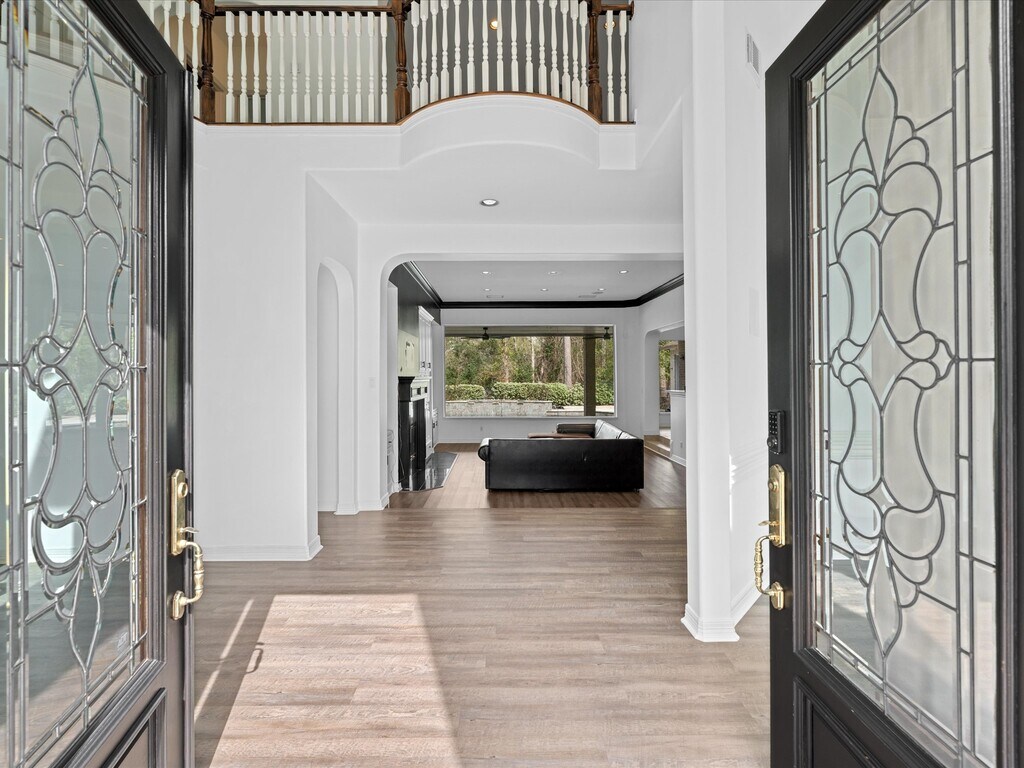 This beautifully updated golf course home blends understated elegance with everyday comfort,starting with double beveled glass doors that open into a warm,inviting foyer framed by hardwood floors and custom millwork. The open layout is perfect for entertaining,with expansive butt-glass windows in the family room and primary suite overlooking the newly replastered pool. A renovated outdoor kitchen,new pool lighting and equipment,fresh all white kitchen,new flooring throughout,updated closets,new AC,and a redone deck make the home truly move in ready. With surround sound speakers throughout,a gated driveway,oversized garage,and Porte-Cochere,this home offers both luxury and convenience in one seamless experience. MLS# 91427227