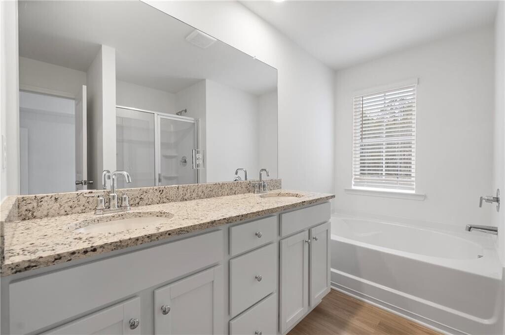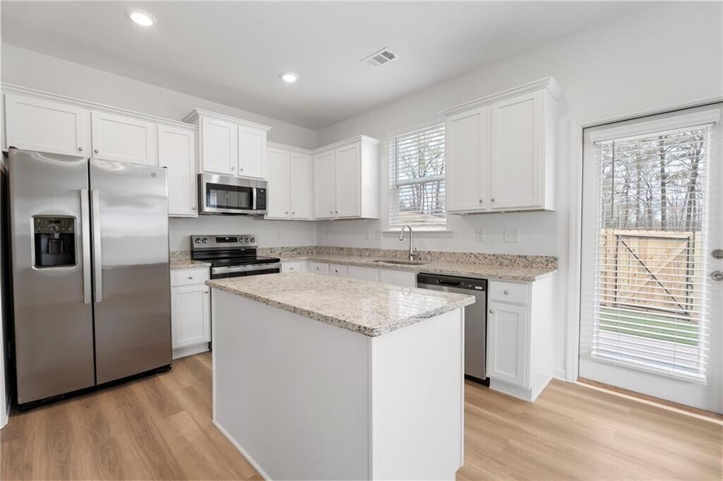Discover the epitome of contemporary living in this stunning,BRAND NEW - END UNIT - townhome designed to captivate your senses. With meticulous attention to detail,revel in the allure of this 3-bedroom,2.5-bathroom home,offering an abundance of natural light and a wealth of thoughtful features. Step inside and be greeted by the airy,open concept floor plan,featuring a well-appointed kitchen on the main level. The kitchen boasts sleek granite countertops,pristine white cabinets,and top-of-the-line stainless steel appliances,including a side-by-side refrigerator. Elegant hardwood flooring graces the main level,while plush carpeting adds warmth and comfort to the upper floors. Ascend to the second floor and discover a generously sized loft,perfect for creating a second living room,a home office,or any other space your imagination desires. This versatile area opens up loads of possibilities for customization. Retreat to the master suite,where you'll find a masterfully designed bathroom that includes a separate tub and shower,a double vanity,and a spacious walk-in closet. It's your personal sanctuary for relaxation. Two more spacious bedrooms on the upper level provide ample space for family,guests,or creative use of your choice. The fully fenced yard is a haven for pet owners,offering a secure and private space for your furry friends to roam. The lawn care is thoughtfully maintained by the HOA,ensuring your outdoor space remains pristine and hassle-free. Enjoy the convenience of a 2-car garage and a driveway with space for two additional cars,ensuring that parking is never a concern. Nestled in a beautiful new community in Conyers,this townhome is conveniently situated near shopping,grocery stores,and the I-20,making daily errands and commutes a breeze. Ask about our specials!! MLS ID 7736328