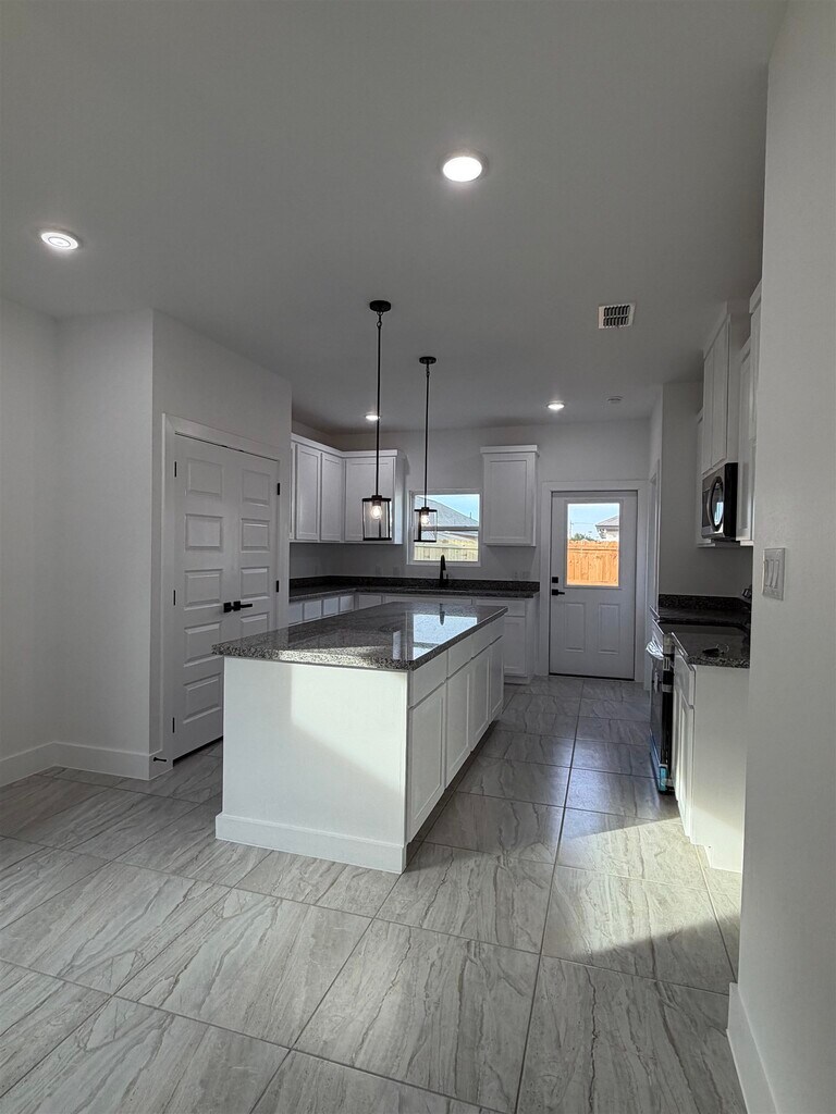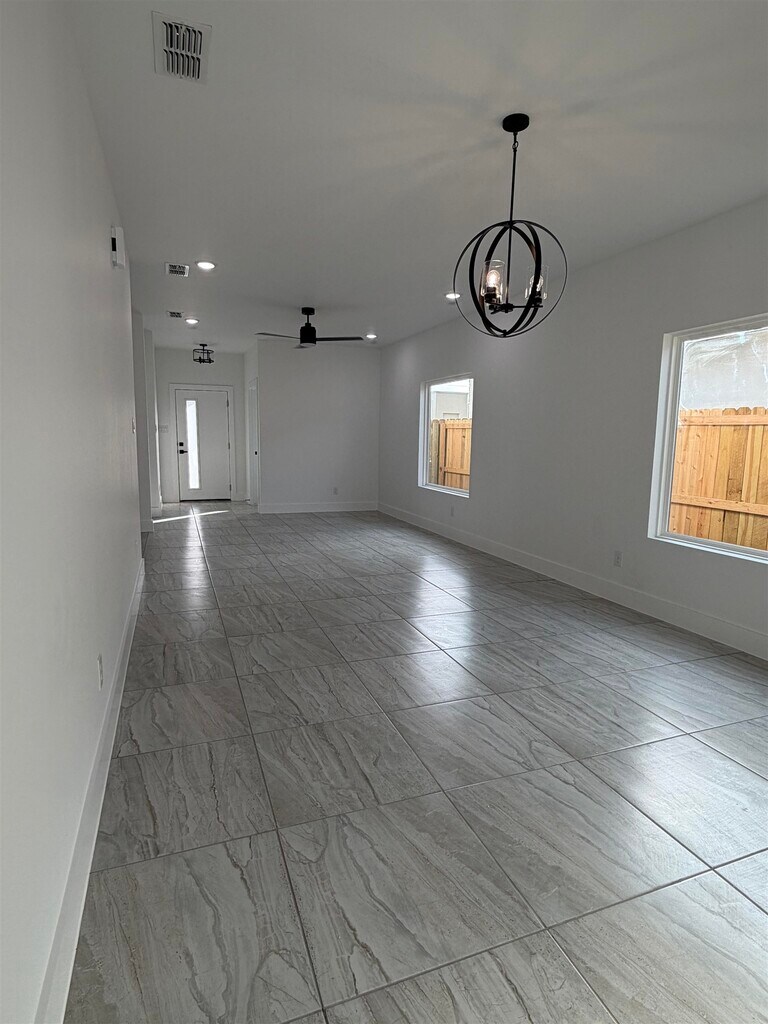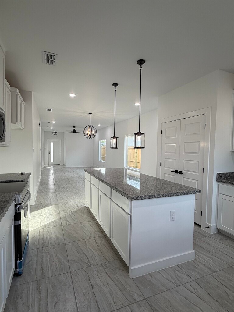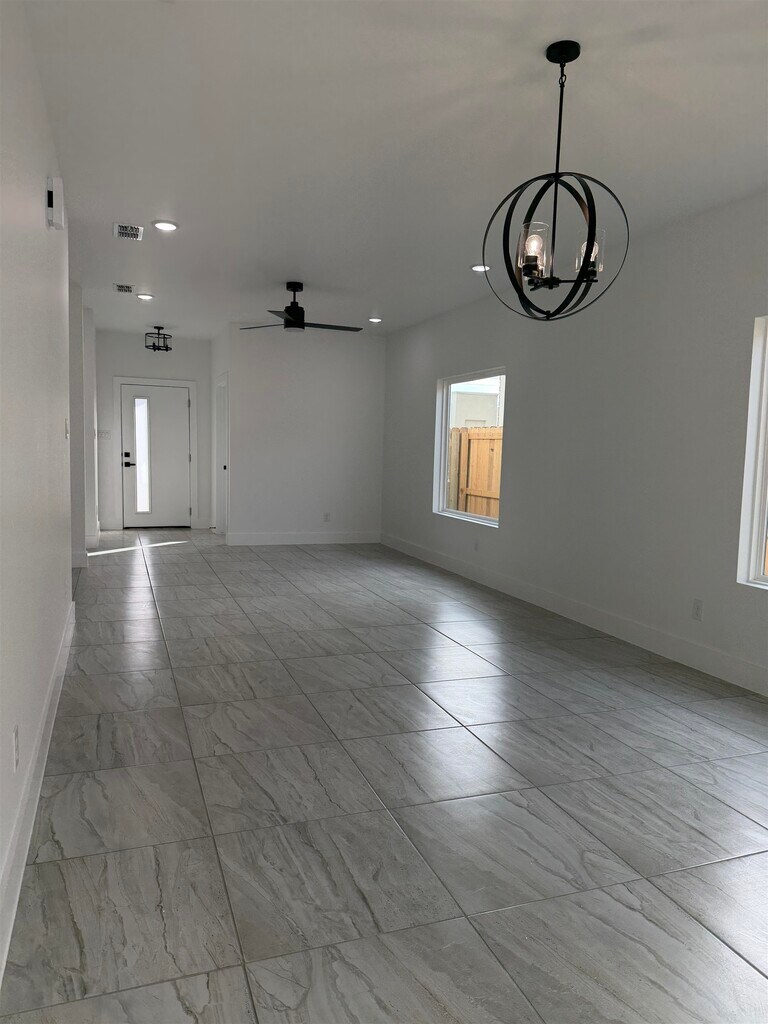 New rental in the Santa Elena Subdivision in south laredo, this home offers spacious bedrooms an open-concept layout that connects the kitchen dining and living area. It features a modern feel throughout and provides comfortable living in a growing and convenient area. Webb Cad states in zoning AG until it updates to R1