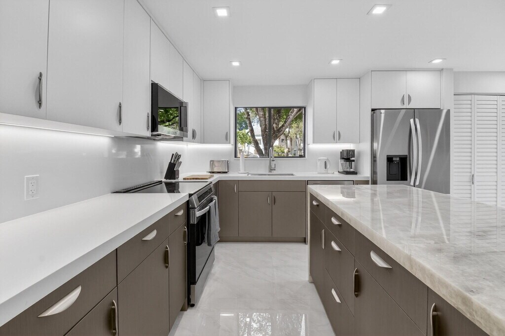 First floor beautiful,totally renovated condo offering stunning views and a spacious open concept layout. The home features two bedrooms,2 baths. There is plenty of room to live and work comfortably. The home features a modern kitchen with a large center island and custom cabinetry for all your storage needs. Gleneagles Country Club has world class social and sports amenities,including two 18 hole golf courses,19 har-tru night lit courts,3 restaurants,2 lounges,cardrooms and state of the art fitness center and spa. MLS ID R11149459