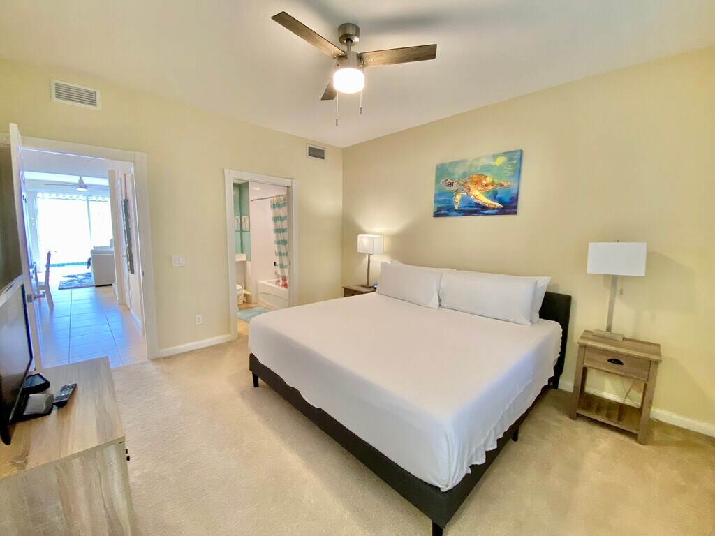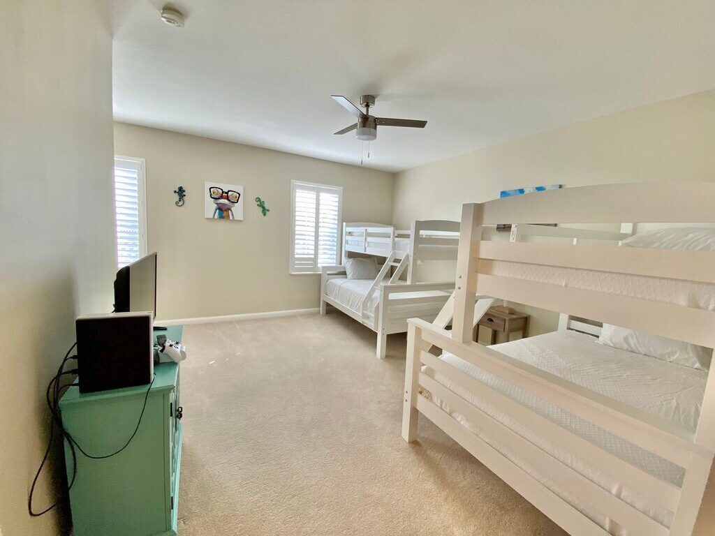 Two-story 3 Bedroom, 3 full bathrooms Townhome with a private pool and a two car garage. Located in VillageWalk of Bonita Springs. This nicely appointed home boosts of coastal decor throughout and upgrades including built-in wall unit in the living room and tile flooring in the main living areas on the 1st floor. Each bedroom has it's own private attached bathroom and have large walk-in custom closets. Two bedroom are located on the second floor along with the laundry room which is very convenient. The master bedroom has a King sized bed and features a private balcony. The large second bedroom has two bunk-beds and a desk work-station area to handled any business you may need to tend to. Each bunk bed has a Double sized bed on the bottom and a single bed up top. The downstairs consists of a spacious living area with sliding glass doors that provide plenty of natural light and views of the private pool , a dining area witha table and chairs to seat 6 and a perfect sized and equipped kitchen with breakfast counter and everything you need to cook and entertain comfortably. The 3rd bedroom is on the 1st floor and has a private porch entrance along with an attached full bathroom and large walk-in closet. To top it off this townhome includes a 2 car garage that is detached from the home by a large private screened in courtyard and pool area. In the garage you will find a BBQ grill and all the beach and pool necessities you need for a good time! Village Walk of Bonita Springs is just minutes from Naples, Fort Myers, beautiful beaches, and world-class shopping. Here, the Gulf of Mexico is warm and perfect for swimming, boating, and fishing. The soft-powder beaches in Bonita Springs go on for miles, and the sunsets are just spectacular. The restaurants, shopping, and parks are first rate. Beautifully manicured golf courses, both public and private, are everywhere. And of course, Southwest Florida's tropical climate is legendary. Village Walk of Bonita Springs has 24-hour controlled access entry and a delightful lakefront Town Center with numerous amenities including a gas station, touchless carwash, tennis, pickleball, basketball and bocce courts, playground, world class fitness center, restaurant, bagel shop, hair salon, spa and more! The community is very active with a full-time Lifestyle Director. Take a look at the Talk of the Walk newsletter and, if you live in Village Walk, tune into Channel 195 or 196, our very own TV channels!