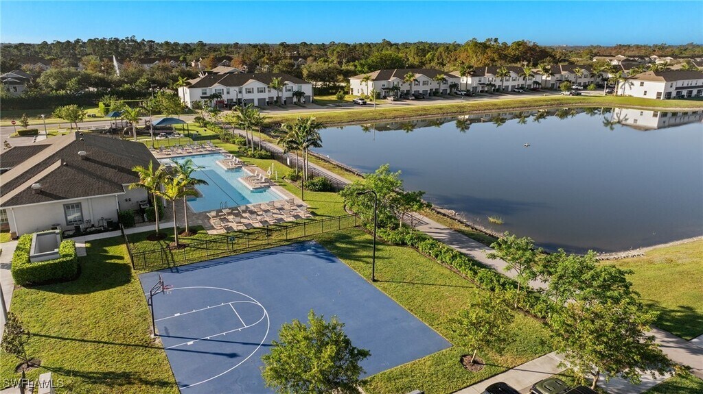Light and bright southern exposure lake front townhome available to for ANNUAL rental EARLY JANUARY 2026! Pets allow upon owner approval. This town features open floor plan,white kitchen,quartz counters,and stainless steel appliances,3 bedrooms and 2.5 bathrooms and loft,1 car garage,with a long 2 car wide driveway for easy parking. Enjoy your screen in lanai over looking lake and fountain features. Community offers community room,POOL,billiards,EXERCISE ROOM,playground & BASKETBALL court. Meadowood is conveniently located in A+ Collier County school district,within minutes to tons of dining and shopping options and 20 minutes to Naples white sand beaches!