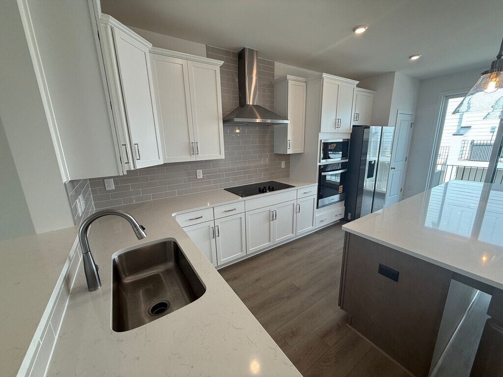 this Brand new 3-story townhome boasts 4 bedrooms, 3.5 bath with a Primary Suite and 2 bedrooms on the 3rd level, bedroom & full bathroom on 1st floor and 2-car rear-load garage! Walk up the stairs to your light & bright second level where you’re greeted by a spacious great room & Gourmet Kitchen featuring an oversized island, SS appliances, 5-burner electric drop-in cook-top, wall mount range hood, wall oven & wall microwave, tile backsplash & SS undermount sink. A perfect space for entertaining! The Primary suite features a large walk-in closet with dual sinks, tile floor, walk-in tile shower with semi-frameless glass door & tile seat. Hall bath with tub/shower combination. Laundry on 3rd. Location, Location! Just seconds from shopping, dining, and entertainment. This is a must see! Call us today!
