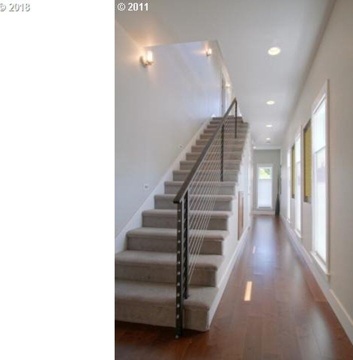 Property Id: 52694 YOURS TO FURNISH. Built in 2012 by Jordan Iverson, this new, stylish contemporary stand-alone home is approximately 1750 square feet. The pictures do not do the house justice; it is very impressive. Available for a 12 month lease, beginning July 1, 2026. Located .75 miles from the U of O. Upscale, perfectly maintained home with an abundance of amenities. Hardwood floors, central air conditioning and heating, SOHO gas fireplace, built in flat screen tv with swing out media cabinet, quartz countertops, maple cabinets, vaulted bedrooms, loft office space, art niches, built-ins, window coverings, energy star & Earth Advantage green certified, balcony from master suite plus back patio, fenced yard with raised beds, and owner security system. 2 very large bedrooms, including a huge master bath/walk-in shower, and large walk-in closet. 2.5 baths, large sunny balcony, patio, garage, driveway parking off main street, high quality washer/dryer, flatscreen tv.