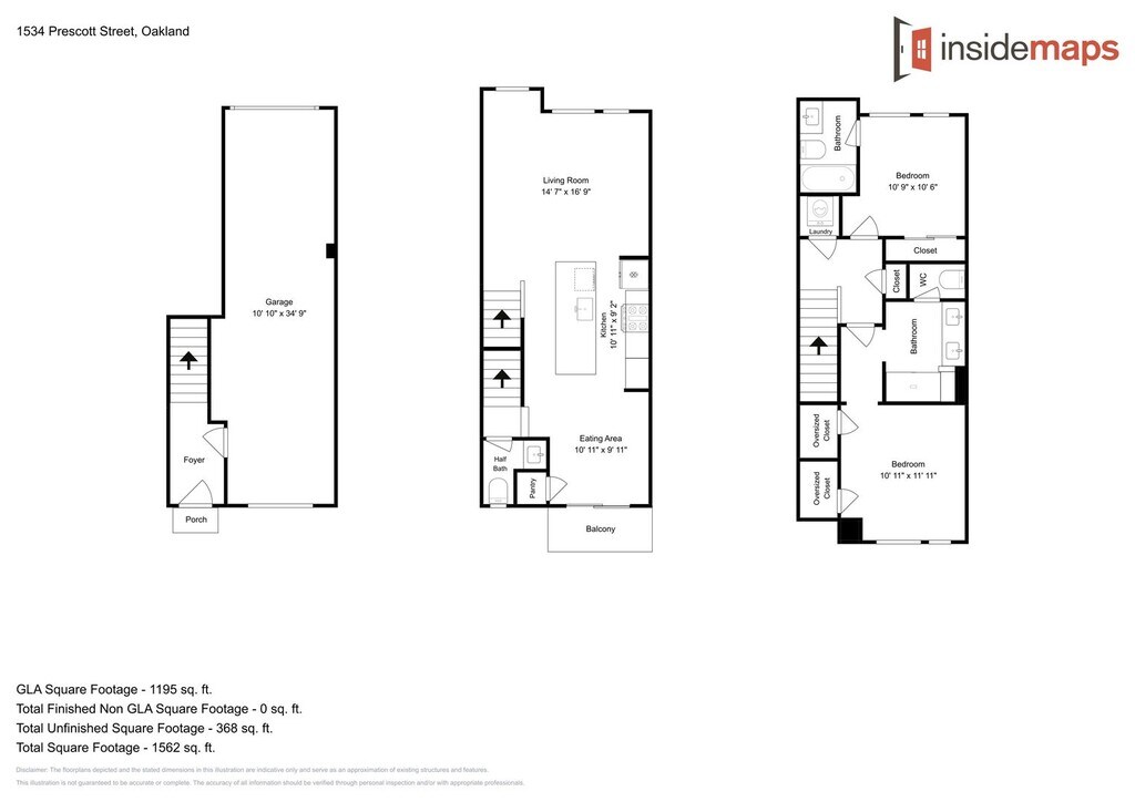 Welcome to 1534 Prescott Street, a tri-level townhome in the Prescott neighborhood of Oakland, CA. This must-see home in the Station House development includes ideally arranged layouts for all 3 floors to maximize space and comfort. Upon entering from the courtyard, you have a small entrance foyer with access to the garage with 2 tandem spaces which provide ample space. Once you go up to the second level, you have a spacious living room coupled with modern, updated kitchen and eating area. A half bath is also located on this level. The kitchen has an electric induction range, large French-door refrigerator/freezer, premium dishwasher and built-in microwave drawer. Just off the eating area is a sliding door with balcony that gives you a relaxing space to sit outside and relax in your own private overlook. On the third level, you will find a stack washer/dryer, 2 nice-sized bedrooms, each with ensuite bathrooms. The master bedroom has an expansive closet, as well as tiles large stand-up shower - the other bed/bath has a nice soaking tub. Closet space in the home is plentiful. Central heating and air conditioning is another added benefit. Please note that square footages are approximate and unit is delivered unfurnished. Reach out now to schedule a tour! Additional Details: Rent: $2,950/month Security Deposit: $2,950 No pets, please. Lease Term: 12 months Available: Now Utilities: HOA dues included. Tenants responsible for PG&E, water, trash, renter's insurance and Latchel maintenance benefits package at $25/mo.
