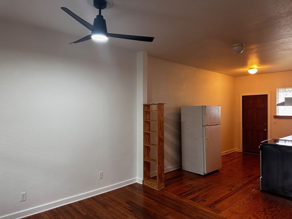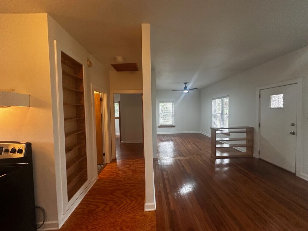 Cute one bedroom duplex home near all campuses and outside businesses super convenient to all activities at Cascades Park and Proof Brewery. Hardwood flooring throughout with tile flooring in the bathroom. Nice kitchen with all wood cabinets, spacious living room, and large bedroom. Bathroom located in the hallway. Back door from kitchen leads downstairs to large storage room with washer and dryer included along with extra room for luggage and other items you don’t want taking up space inside your home. No pets preferred. Directions. South on Monroe to Palmer, turn left. Duplex is on corner of Palmer and S. Gadsden. Street parking.