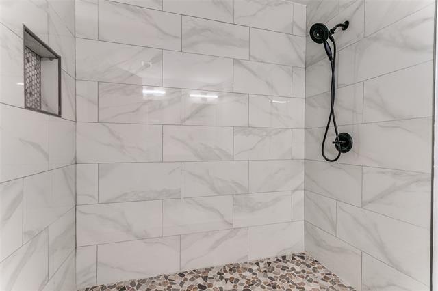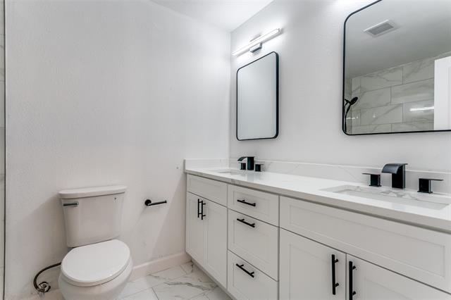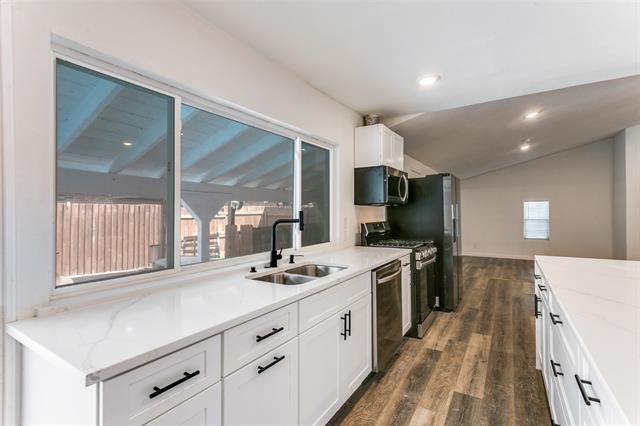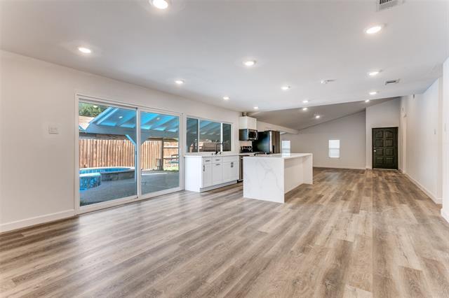 Updated Mid-Century Modern–Inspired Single Story with Private Resort-Style Yard! This fully remodeled ranch home sits on a beautiful tree-lined street, just three blocks from the heart of Lewisville’s Main Street. Featuring a light-filled, open floor plan,Luxury laminate floors throughout the house,an open kitchen with quartz island,countertops and new stainless steel appliances overlooks the cozy den and covered poolside patio. Designed with entertaining in mind, the expansive living spaces flow seamlessly indoors and out. The low-maintenance covered backyard design creates the perfect setting for gatherings or quiet relaxation. The spacious primary suite offers dual sinks, a walk-in closet, and a beautifully tiled shower. Down the hall, you’ll find two additional bedrooms, a full guest bath, a powder bath, and a convenient utility closet. Completing the home is a two-car garage with a ceiling vent system( to make a spare room) and a covered patio with alley access.