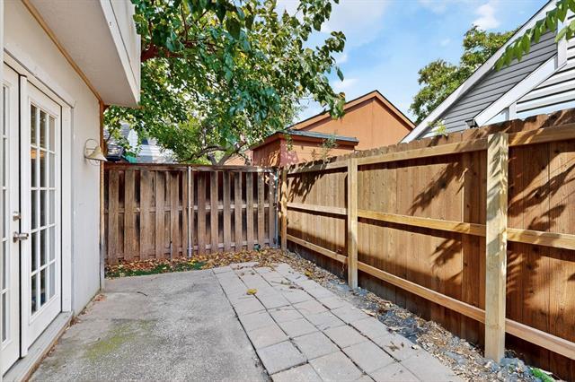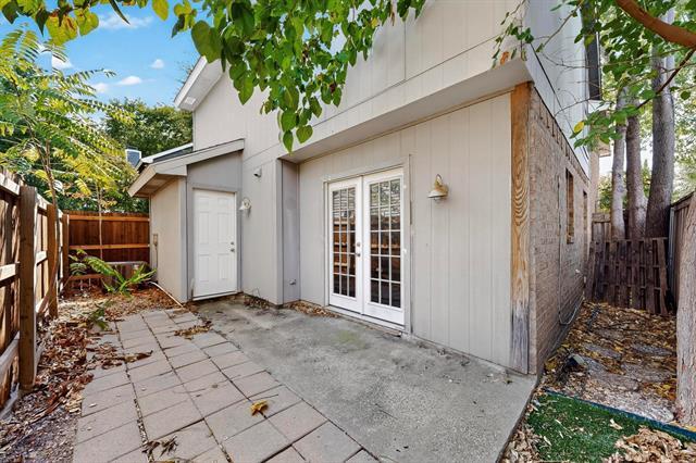 This two-story townhouse places you right by Dallas’ vibrant arts scene. Exall Park is within walking distance, Baylor University Medical Center is a mile away, and the Dallas Arts District is only five blocks from your door, with Uptown and Lower Greenville minutes away by car. Soaring ceilings in the living area frame a dramatic two-story stone fireplace and floor-to-ceiling windows that fill the home with natural light. The open kitchen features light wood cabinetry, sleek black appliances, a stainless refrigerator and granite-look counters, all flowing into the dining and living areas. Two bedrooms offer neutral tones, cozy carpet and generous closets, while one and a half baths include a pedestal sink and tiled flooring. French doors lead to a private, fenced patio perfect for container gardens or outdoor seating. Built in 1983 and offering 1,050 square feet of space with an attached garage , this move-in-ready home enjoys a lively neighborhood with parks, galleries, and dining just moments away.