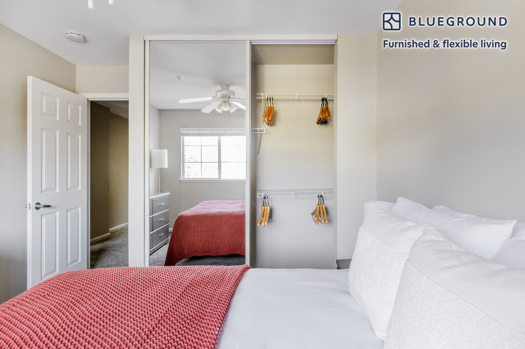 Feel at home wherever you choose to live with Blueground. You’ll love this beautiful Santa Clara furnished two bedroom apartment with its modern decor, fully equipped kitchen, and roomy living room. Ideally located, you’re close to all the best that Santa Clara has to offer! (ID #SFO509) The advertised rate of $3,320/month is the lowest available price, based on a 12 month(s) stay with a move-in date of March 5, 2026. Rates vary depending on the duration of stay, season, and other parameters. For exact pricing and additional pricing components, please visit our website and enter your desired move-in and move-out dates. The rate is applicable when billed upfront; it can be higher if billed in multiple payments. Brokers are welcome to reach out. Were you looking for an unfurnished lease? Try Blueground instead and upgrade from unfurnished to furnished living: - Furnished at rates comparable to unfurnished - No setup or furniture costs - save thousands - Move-in ready - save time, just bring your suitcase Designed with you in mind As with any Blueground apartment, you’ll find a thoughtfully designed space complete with beautiful furniture and a fully equipped kitchen in this two bedroom property. And, thanks to our superior quality mattresses, luxury linens, and towels, you can relax knowing you’ll always feel comfortably at home. When you’re ready for some fun, you can take in the Santa Clara vibes or bring the entertainment to you with the premium wireless speaker or smart TV. This apartment also offers in-apartment laundry. Sleeping arrangements King Bed, 70.8in/180cm Queen Bed, 63in/160cm Amenities Building amenities unique to this two bedroom apartment include an on-site: - BBQ Area - Dryer - Swimming pool - Washing machine - Parking - Pets allowed - Sauna Arrival and ongoing support The entire apartment is yours to enjoy! Throughout your stay, you’ll have access to our Client Experience team through the Blueground App. You can schedule additional cleanings, submit maintenance requests, and view our neighborhood recommendations with just a few taps. We’ll share all details upon confirmation of your stay. Ideally Located This furnished home is in the mid-sized city of Santa Clara which has 116,000 people living there. Many singles live in Santa Clara with 20% of the total population between the ages of 25-34. Residents of Santa Clara rely mainly on their cars to commute to work. This city is home to the newly built Levi’s stadium, where the San Francisco 49ers play. Also, international soccer games, concerts, college football and other events are often held here. Other recreational activities include Great America amusement park and Kuma Trapped Escape Room. Other things to note Building amenities may have an extra cost. This Blueground apartment has flexible lease options, allowing you to book it for one month, a year, or more. Pets are welcome, though weight limits and breed restrictions apply and may incur fees. Parking is offered based on availability and is subject to a fee. Please keep in mind that this is a walk up building. We take great pride in ensuring every photo displayed is shot in our own units with our actual furnishings. That said, we regularly refresh our decor and furniture arrangement, which may differ from what’s pictured. [SI]