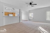 Updated 3Bdm 2Ba Home in Surprise!This property is located on a quiet cul-de-sac lot and offers a bright, open layout with spacious living areas perfect for relaxing or entertaining. Large windows bring in plenty of natural light, and the neutral color palette allows for easy personalization. The kitchen features generous cabinet space, white appliances, and a functional design that connects seamlessly to the dining area and main living space. Sliding glass doors lead directly to the backyard, creating a comfortable indoor–outdoor flow. The home includes comfortable private areas with ceiling fans, ample lighting, and flexible layouts suitable for various furniture arrangements. The bathroom is well-appointed with a long countertop, storage, and a clean, refreshed look. A dedicated laundry room adds extra convenience. Outside, you'll find a spacious backyard with a large concrete patio ,great for outdoor seating, gatherings, or simply enjoying the Arizona sunshine. The yard offers plenty of potential for gardening, play space, or pets. Located in a desirable Surprise neighborhood, this property provides quick access to local shopping, dining, and parks while offering the comfort and privacy of a residential community.Unit features central AC. The property also includes a 2-car garage for added convenience and storage.Tenant pays all Utilities. Pets with approval via process. This property allows self guided viewing without an appointment. Contact for details.