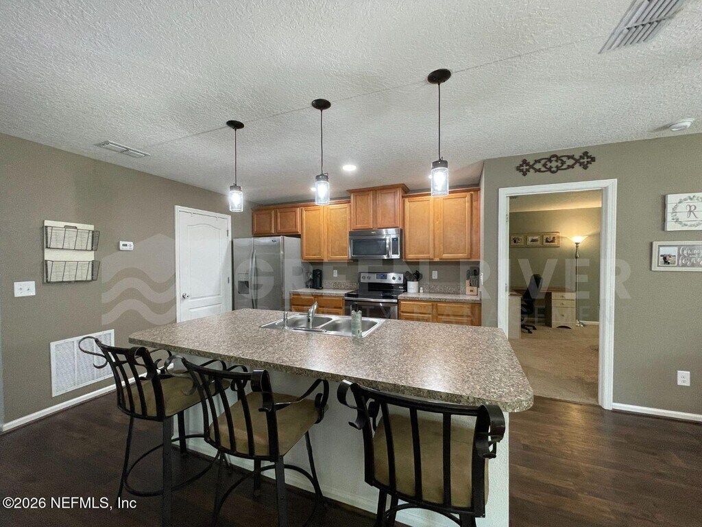 AVAILABLE: May 25th! Welcome home! Welcome home to this charming 3-bedroom,2-bath beauty that checks all the boxes! Featuring an open-concept floor plan,this home offers the perfect blend of comfort,style,and functionality. The spacious living areas and kitchen showcase LVP flooring,while plush carpet adds warmth to the bedrooms. The heart of the home is the HUGE kitchen island that overlooks the living and dining spaces,perfect for entertaining,meal prep,or casual everyday living. You'll also love the stainless steel appliances,abundant counter space,and custom lighting fixtures that add a stylish touch throughout. Natural light pours in,creating a bright and welcoming atmosphere in every room. Retreat to the spacious primary suite,complete with an en suite bathroom,dual vanity sinks,and a walk-in closet for all your storage needs. Additional features include ceiling fans throughout and a layout designed for easy living. Step outside to enjoy the fully fenced backyard with plenty of shade--ideal for relaxing and soaking up the beautiful Florida weather. As an added bonus,residents can enjoy access to fantastic community amenities,including a pool,clubhouse,playground,and more! Dogs welcome,no cats. Please note that a minimum combined credit score of 500 is required,and the gross income must be at least three times the monthly rent. We provide a Resident Benefits Package (RBP) to elevate your rental experience for our residents. Our program handles renters insurance,identity protection,utility set up,credit building,rent rewards (Pinata),and group rate internet at a rate of $47(RBP) plus $62 (Internet) for 1 Gig group rate internet/month with premium support and setup,added to every property as a required program. More details upon application. MLS# 2139920