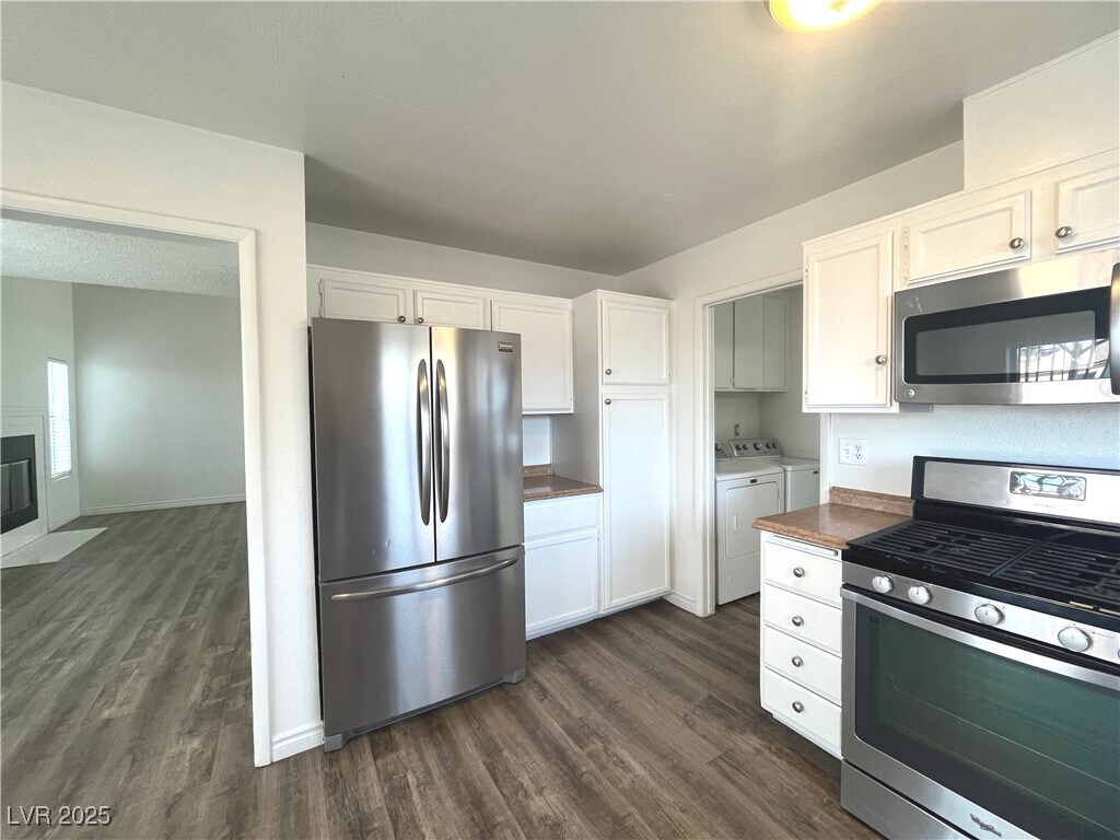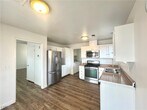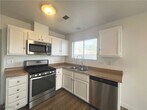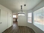 1368 sq ft, 3 bedroom, 2 1/2 bath, 2 car garage on oversized corner lot w/No HOA and Solar for low power bills!!! Luxury Vinyl Plank flooring throughout the entire house. Living room with vaulted ceilings and gas fireplace. Kitchen features laminate countertops, white painted cabinets, pantry, dining nook and SS appliance, plus it has a formal dining area. Primary bedroom with double french doors, vaulted ceilings, ceiling fan & light. Primary bath with dual sinks, laminate counters, white cabinets, walk in shower and walk in closet with built in shelves. Bedroom 2 & 3 with vaulted ceilings, ceiling fan & light and closet. Linen closet with built in cabinets. Second bathroom with laminate counters, white cabinets and tub/shower combo. Laundry room with built in cabinets and additional storage cabinet. Backyard features a covered patio, desert rock landscaping, concrete slab and shed. Additional side parking in front for extra cars.