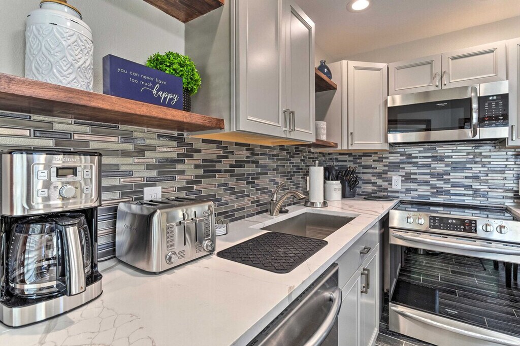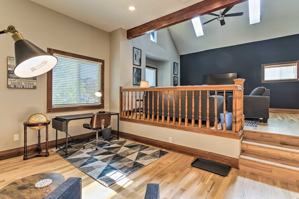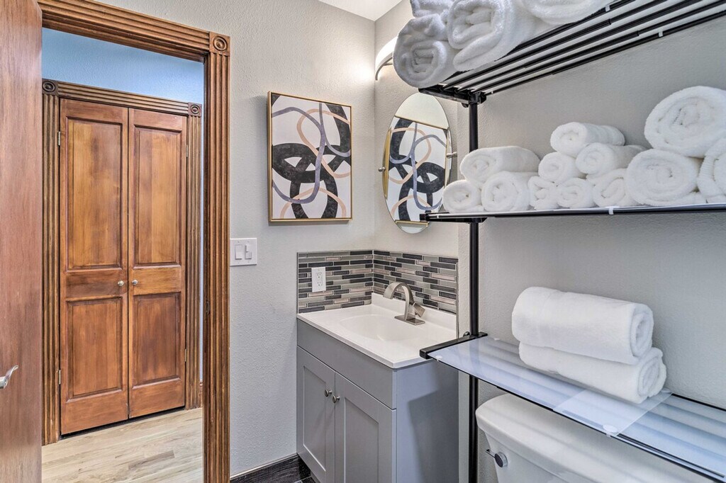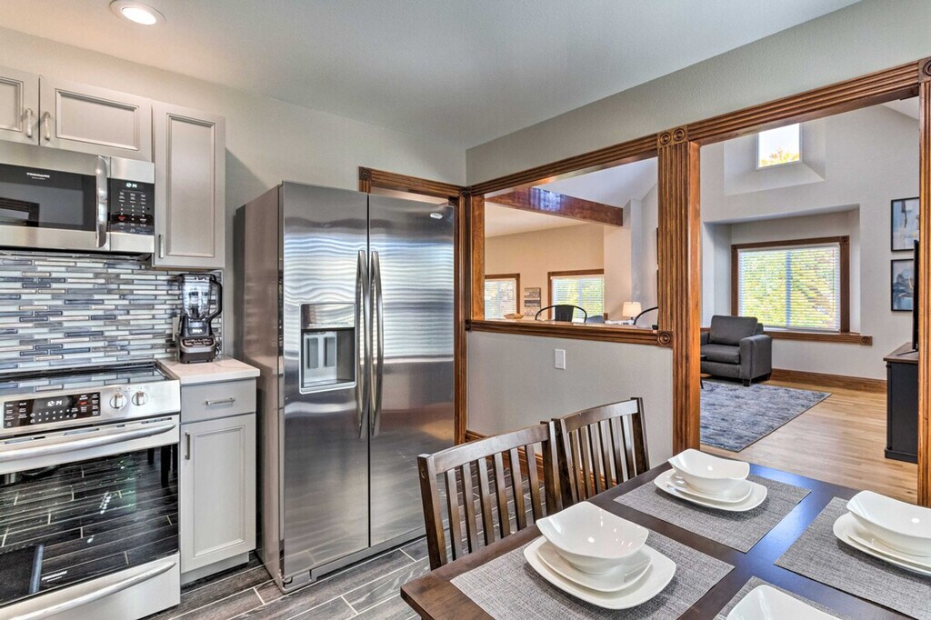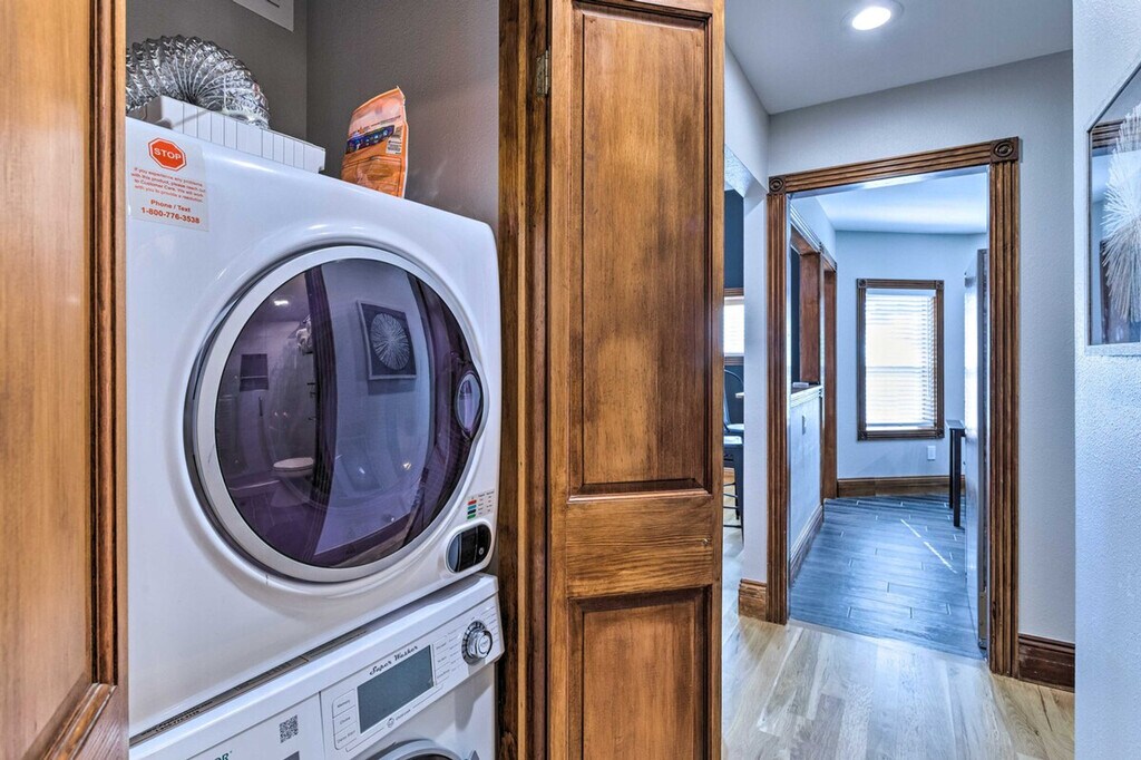 Feel at home in this Denver townhome, located in the trendy Capitol Hill neighborhood. This 1-bedroom, 1-bathroom vacation rental offers easy access to everything that makes Denver special. This recently renovated interior features smart TVs, 2 living rooms, a laptop-friendly desk, an eat-in kitchen, board games, and a breakfast bar with seating. The kitchen is equipped with cooking basics, quartz countertops, a dishwasher, a coffee maker, a stove/oven, a refrigerator, a microwave, a blender, dishware and flatware, an ice maker, spices, and a toaster. You'll also find free Wi-Fi, complimentary toiletries, linens and towels, an in-unit washer and dryer, central heating and air conditioning, ceiling fans, a hair dryer, and an iron/board. Driveway parking is available for 2 vehicles. Start your morning with a walk in Cheesman Park, just a few blocks away, before heading out to explore. Whether you prefer city life or outdoor adventure, you’ll have your pick of the best hiking and activities the state has to offer. There are 2 exterior security cameras on the property, one on the front and one on the back, that actively record video and audio when motion is detected. Stairs are required for access. No smoking, pets, events, parties, or large gatherings are allowed. Additional fees and taxes may apply, and a photo ID may be required upon check-in. There is another bookable vacation rental on-site, so other travelers may be present during your stay. Includes a laptop-friendly desk. [SI]
