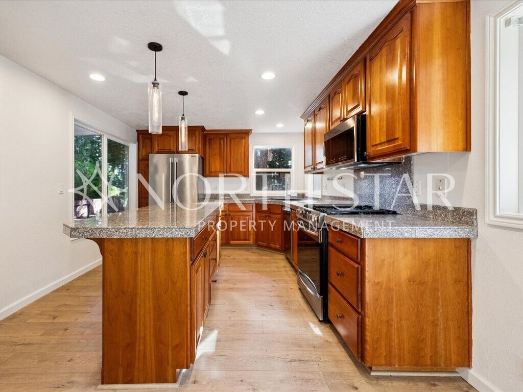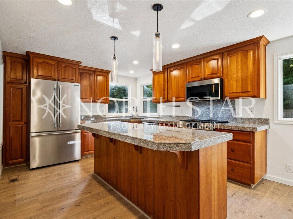 Available now, this 3-bedroom, 2.5-bathroom home offers 1,540 sq. ft. of updated living space. Built in 1977 and fully renovated in 2024, the property combines modern finishes with functional design. Interior features include vaulted ceilings, skylights, granite/quartz countertops, a gas fireplace, and double-pane windows. The home is equipped with central heating and air conditioning, ceiling fans, and internet-ready wiring. The kitchen includes stainless steel appliances, a wine fridge, dishwasher, washer/dryer, stove/oven, microwave, refrigerator, and garbage disposal. Outdoor areas include a backyard, porch, patio/roof deck, balcony, and garden space. Parking is available with a garage and driveway. An electronic front door lock provides added convenience. Additional notes: ALL LISTINGS: An approved application does not constitute a contract or lease agreement with the management company or homeowner. PDX: Sometimes Zillow populates amenities incorrectly. Please refer to our website for an accurate reflection of amenities as reported by the owner: Pet policy: Negotiable For more information or to schedule a showing, please contact North Star Property Management.