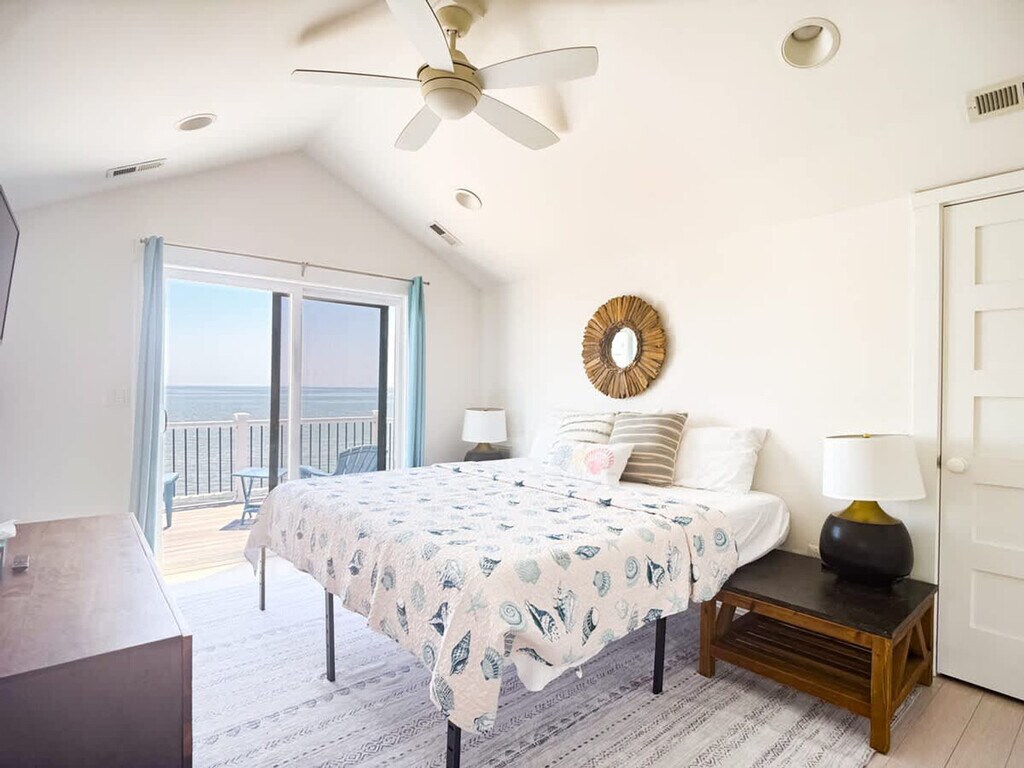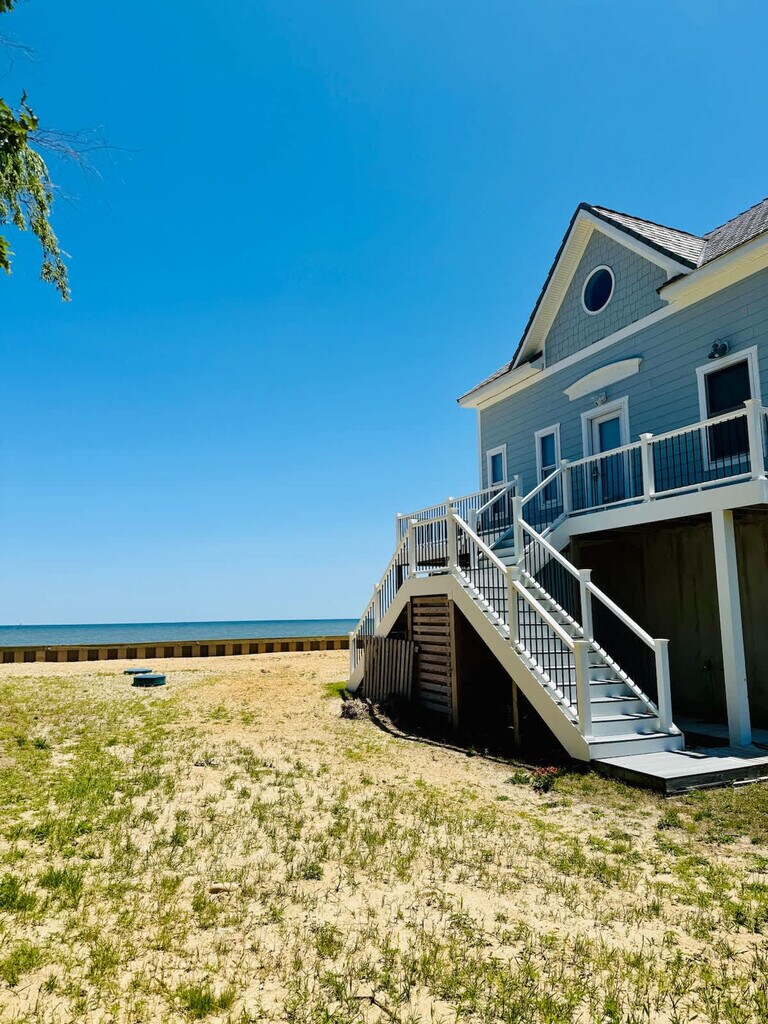 Feel at home in this beautiful beachfront home in Scotland, MD, offering breathtaking Chesapeake Bay views. This spacious home spans 3 floors and 2,200 sq. ft. and features 4 bedrooms and 4 baths. This home boasts elegant interiors with cozy luxury decor. The fully stocked kitchen and spacious decks are perfect for outdoor dining. Enjoy private beach access with kayaks and crabbing gear. Details such as soft-close drawers, accent lighting, custom barn doors, and mosaic tile floors enhance the experience. Large glass doors slide open to a waterfront deck that feels like an extension of the living room. Fast Wi-Fi is available. Tucked away on a quiet peninsula in Scotland, MD, this retreat offers unbeatable sunsets and wide-open water views, just 2 hours from DC. It's also conveniently located 10 minutes from Point Lookout State Park and close to boat launches, fishing spots, and nature preserves in a quiet, low-traffic area. This isn’t your average rental; it’s a place with soul, sunshine, and serious upgrades. This home is remote work-ready, offering fast Wi-Fi and peaceful surroundings. [SI]