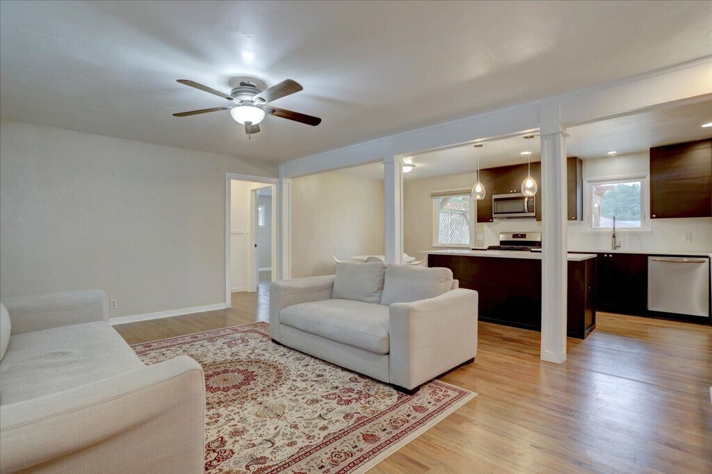 Welcome to this stunning ranch-style home in the heart of Longmont with a finished basement and oversized detached two-car garage.Step inside to gleaming hardwood floors on the main level and a wide-open design ideal for entertaining. Modern paint scheme, hardwood floors, and a completely remodeled kitchen bring this property to life. Gorgeous dark, custom cabinetry, quartz countertops, kitchen island, stainless steel appliances, deep farm style stainless sink with window to backyard, slow-close luxury drawers, and gas range that overlooks the dining room and the family room. Escape to the north wing of the home featuring two large bedrooms split by a completely updated full bathroom with tiled floors and double vanity. Convenient laundry room/mud room right off the kitchen complete with side-load washer and dryer. Extra wall to ceiling cabinetry in the mud room with pantry shelves. Room to expand in the finished basement that offers luxury vinyl floors, new paint, family room, and two non-conforming bedrooms split by a three-quarter updated bath. Lots of canned lights keep the space well lit. Would make for a great exercise room, yoga space, entertainment center, or additional living room. Plenty of storage available in the unfinished utility room. Impressive outdoor experience from the covered front porch to the expansive, fenced backyard with cement patio and pergola. Huge space to enjoy the great Colorado outdoors with extra planters and access to the alley loaded, detached 2-car garage. Super location close to downtown, city parks, rec centers, schools, breweries, restaurants, big box commerce and mall on Hover, plus the bustling and diverse culture of Longmont. Attached garage is not included. **Before applying, do you have a showing scheduled? PLEASE schedule an in person showing directly on Properties Plus website. Sorry, we do NOT offer virtual showings. Showings are scheduled online only. Min requirements for approval: Income & Employment: Net monthly income of combined applicants must be two (2.0) times the monthly rental rate. Minimum credit score of each applicant must be 650 or better. No negative rental history or lack of rental history. Please be prepared to show proof of "personal" income not "business" income. Or you will pay any portion of your rent from public or private assistance, a grant, or a loan program regardless of whether such public or private assistance, grant or loan program is paid directly, indirectly, or on your behalf to the landlord and meet the state statute requirements. Applications are considered complete after all adults have applied and the property has been viewed in person AND All RADON Disclosures have been executed by all parties applying. All applicants must meet the minimum prequalification's prior to the landlord's review. Nothing herein, shall obligate Properties Plus, LLC to accept or approve any application for a rental. The Landlord, at their own discretion will approve or deny the rental applications based on credit history, rental history, income history, and criminal history; of each resident over the age of 18 applying within the household. All applicants within a household are considered as a whole, not individually. REQUIRED: Proof of Renter's Insurance at Move-In. $300,000 Minimum on Limits of Liability and Properties Plus, LLC must be listed as additionally insured. Resident May Choose to Add Personal Belongings Coverage at Own Discretion and at Resident's Cost. Resident(s) Responsible for Verifying the Square Footage. If Applicant provides Properties Plus, LLC with a PTSR: a) the PTSR must be available to Properties Plus, LLC by a consumer reporting agency/third-party website that regularly engages in the business of providing consumer reports; 2) the PTSR must comply with all state and federal laws pertaining to use and disclosure of information contained in a consumer report by a consumer reporting agency; and c) Applicant certifies that there has not been a material change in the information in the PTSR, including the Applicant’s name, address, bankruptcy status, criminal history, or eviction history, since the PTSR was generated.