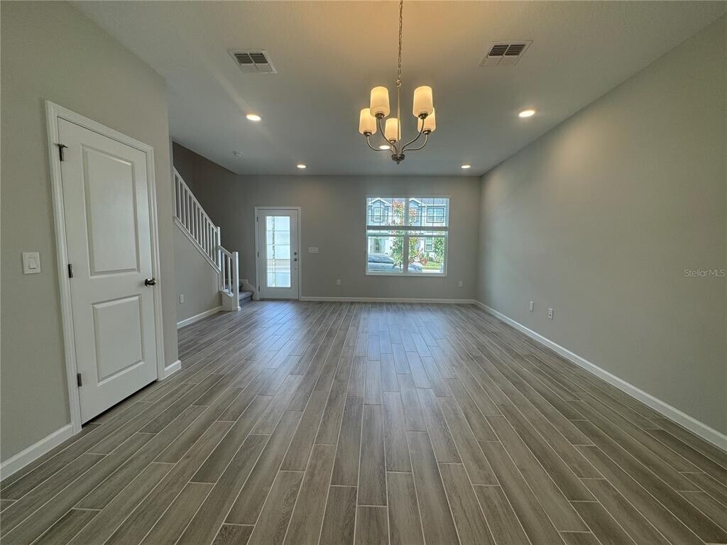 BRAND NEW TOWNHOME- Available Now. Two-story townhome in the upscale community of Tribute at Ovation features an open layout family room,dining room and kitchen. Ceramic Hardwood looking tiles throughout the first floor with modern kitchen,quartz countertops and stainless steel appliances. Ideal for an outdoor living courtyard. Upstairs are all three bedrooms,including the owner's suite with an en-suite bathroom with dual vanity and walk-in closet. This community has a community pool,dog park and is close to all major theme parks,grocery stores and attractions. Call for Move-in specials and schedule your private showing today!