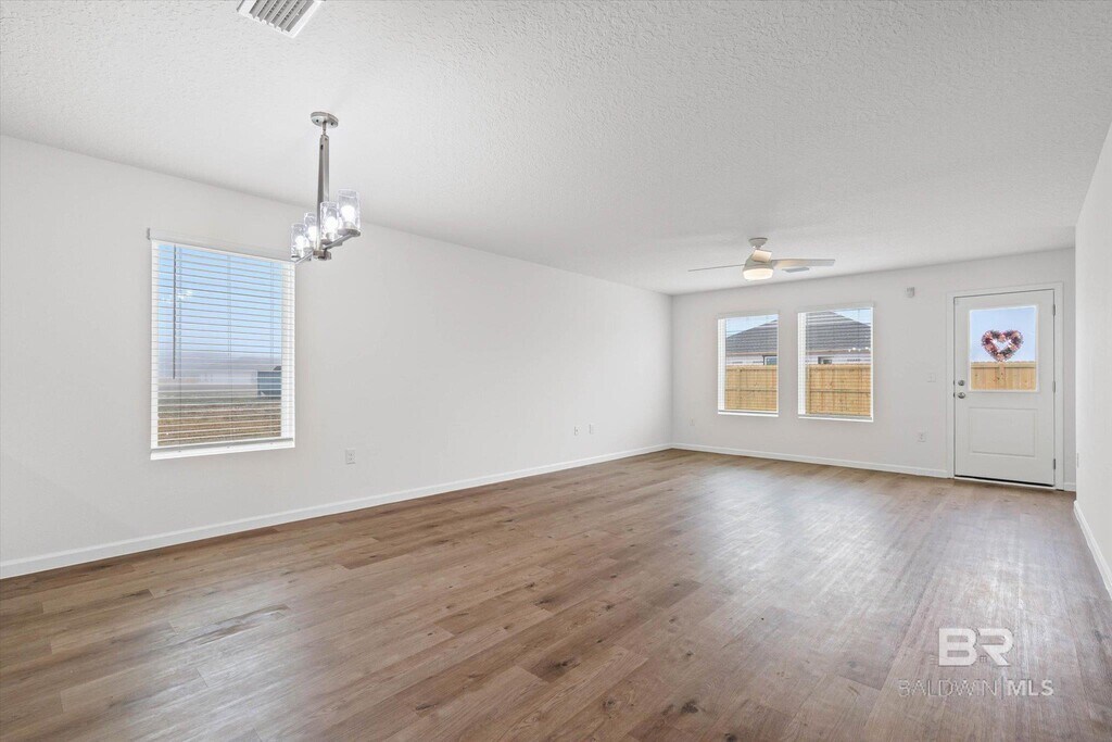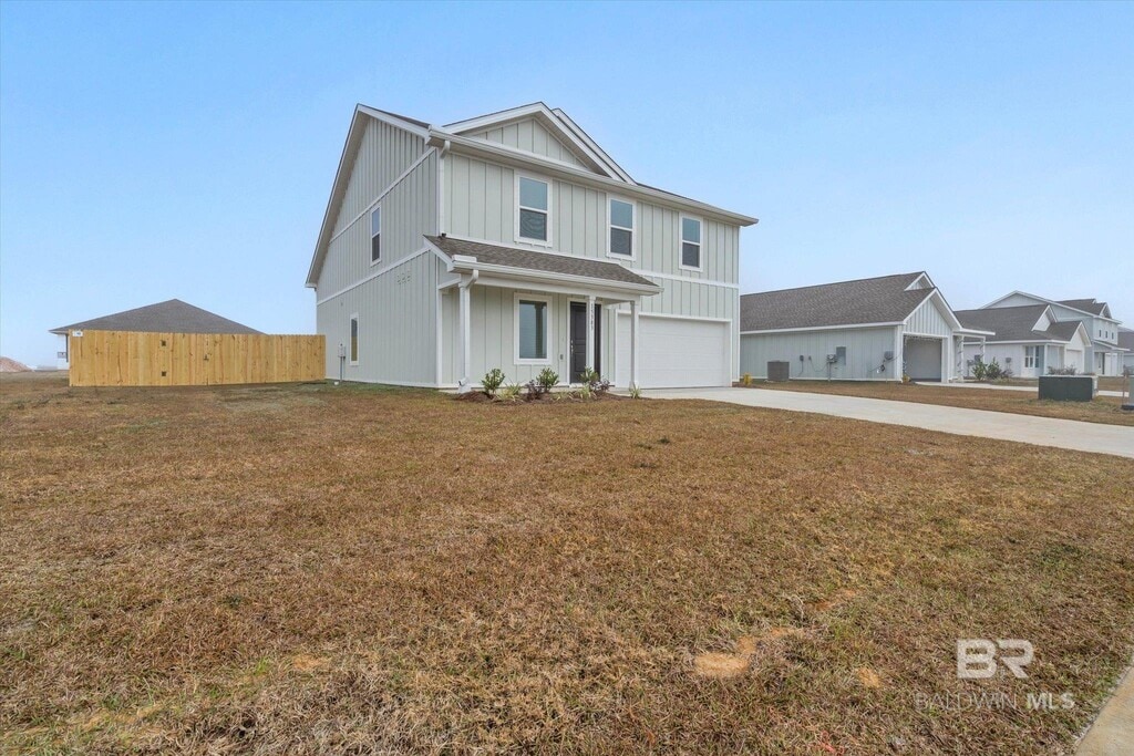 Welcome to Sarah Farms in Foley near Magnolia Springs. Enjoy a rare opportunity to lease a brand-new home with the latest designs. On the first floor of this spacious two-story home is a convenient and modern layout seamlessly connecting the kitchen,dining room and family room together. In a private back corner is the primary suite with an attached bathroom and walk-in closet. Up front and separate from the living space is an additional half bath and separate laundry space. Upstairs there is an open living space for entertainment,along with three bedrooms and a centrally located full bathroom. This spacious floor plan showcases luxury finishes including solid countertops and stainless-steel appliances that include microwave and refrigerator. Additions beyond the builder package include full size washer and dryer,smart home security system with monitoring provided,cabinet hardware upgrades,upgraded mirrors,and added ceiling fans in all bedrooms and living room. Front covered porch allows for relaxing and enjoying this peaceful location or just dry entry after a long day. Also,you can enjoy a private entry within the 2-car garage. Step out back to enjoy your brand-new fenced backyard,perfect for pets,weekend gatherings,or relaxing in your own private outdoor space. Your weekends are yours to enjoy as the owner provides the lawn maintenance. Sarah Farms is a quiet,growing neighborhood and you will enjoy being just 10 miles from the beautiful Gulf Coast beaches as well as near well recognized shopping. Just turn left and County Road 12 provides quick access to both OWA and the Wharf of Orange Beach for great amusement,live entertainment,shopping and restaurants.